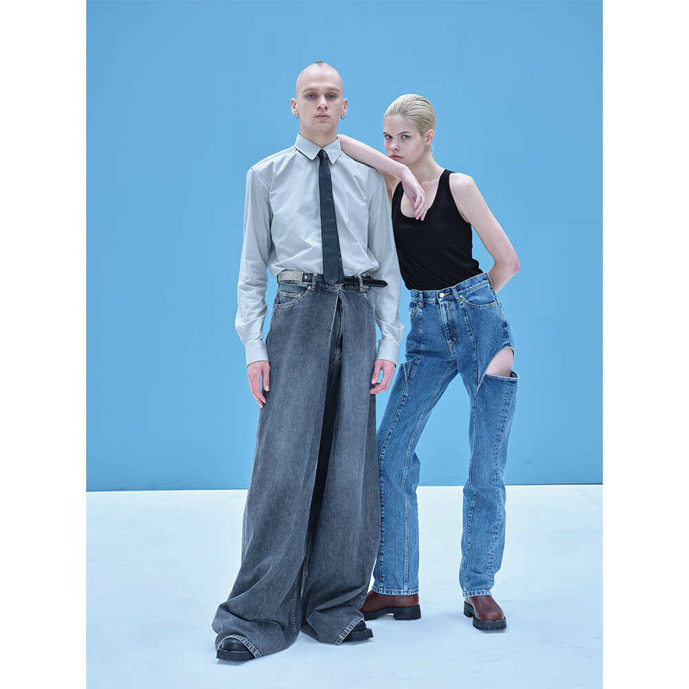 At its core, John Lawrence Sullivan is a brand specialising in evolving men’s tailoring. As with every collection though, SS23 provides a fresh perspective on traditional garment making. This time around, the brand’s founder Arashi Yanagawa brings us deconstructed and distorted silhouettes inspired by fetish-wear and the brand’s own archives. A key reference for the designer is Annegret Soltau, the German visual artist recognised for her torn-apart and sewn-together photomontages. Entitled Progression, highlights from the collection include spider-webbed knitwear, a denim bustier, and classic suit pants with back pockets stitched at the front. Through a process of deconstruction, it appears the identity of JLS is truly coming together. HC