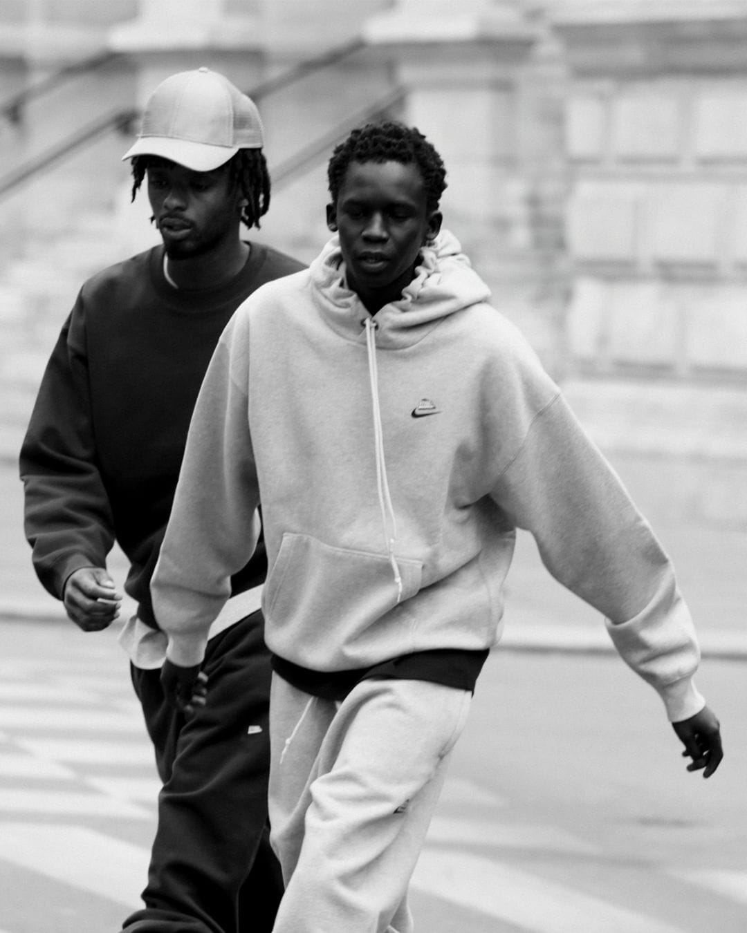 Nike and Dover Street Market reunite for their second collaboration, a 17-piece Nike x DSM Specials capsule launching tomorrow. Fusing elevated basics with that certain minimalist cool, the collection features fleece hoodies, sweatpants, crewnecks and tees in grey, black, burgundy, navy – plus a crisp white tee exclusive. Designed with Rei Kawakubo’s DSM Hut Logo and Swoosh lock-up, the collection balances utility and style. Crafted from Nike’s premium fleece, the pieces are built for everyday wear but carry that unmistakable street-luxe edge.
