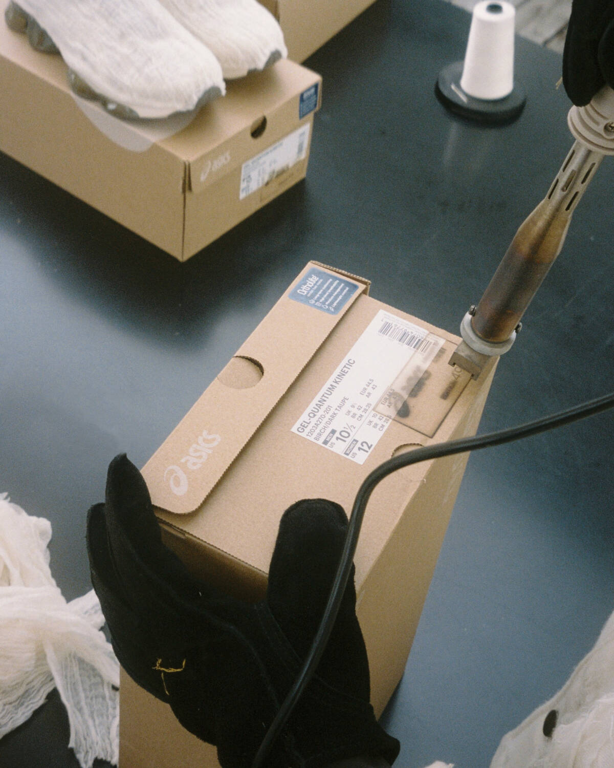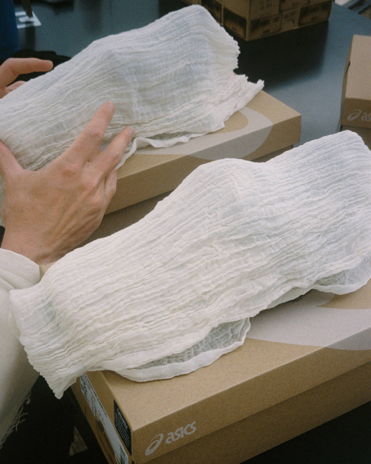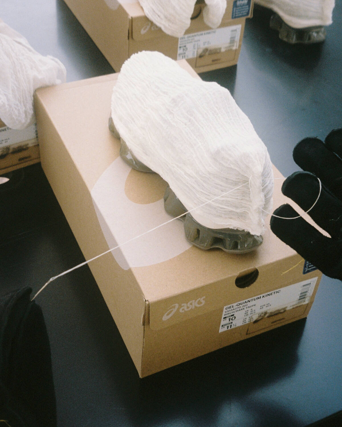 Building on the success of the Dover Street Market x Felix Art Fair release in February, LA-based concept brand Airei and sportswear giant Asics have come together to release a new colourway of the Air Gel-Quantum kinetic model – a truly special design which has to be set on fire to reveal the unique birch scorch patterns on the trainer beneath.