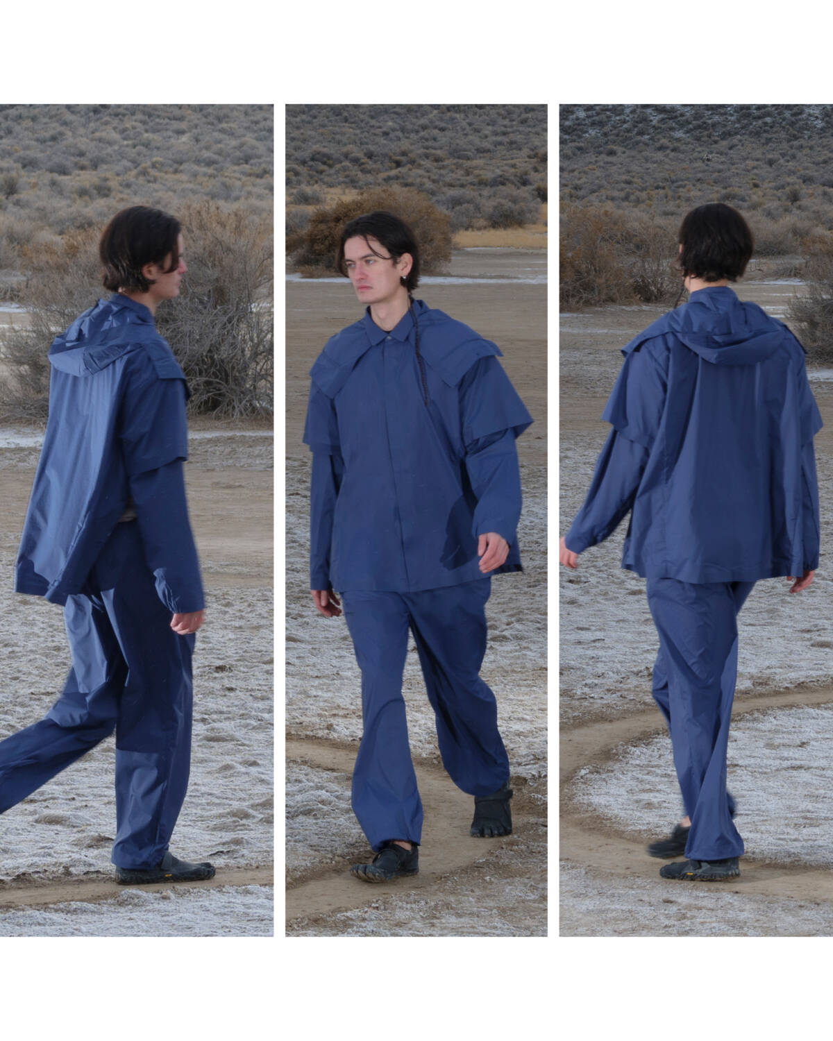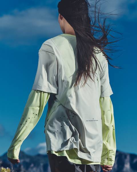 Goldwin 0’s most notable clothing piece is the Wind Shirt, a customisable shell garment with detachable sleeves, a removable hood and made from 100% recycled material. Windproof and water-repellent Wind Pants have also been created out of technical non-stick nylon that is sweat-resistant.