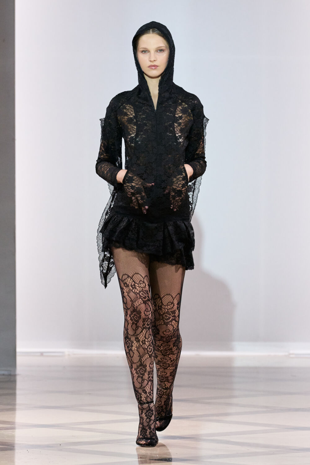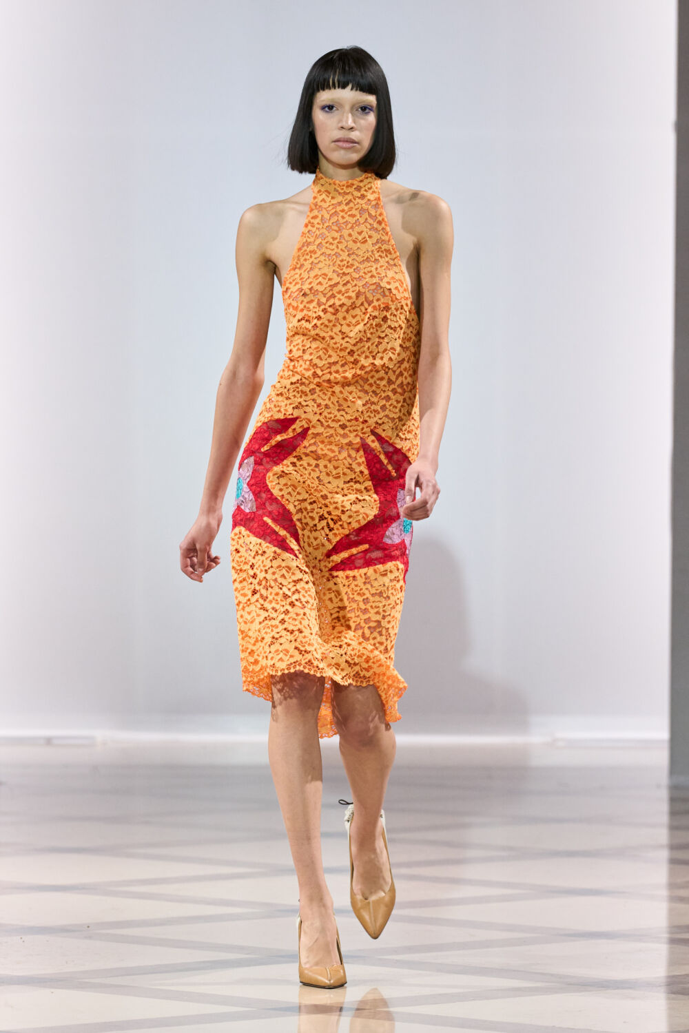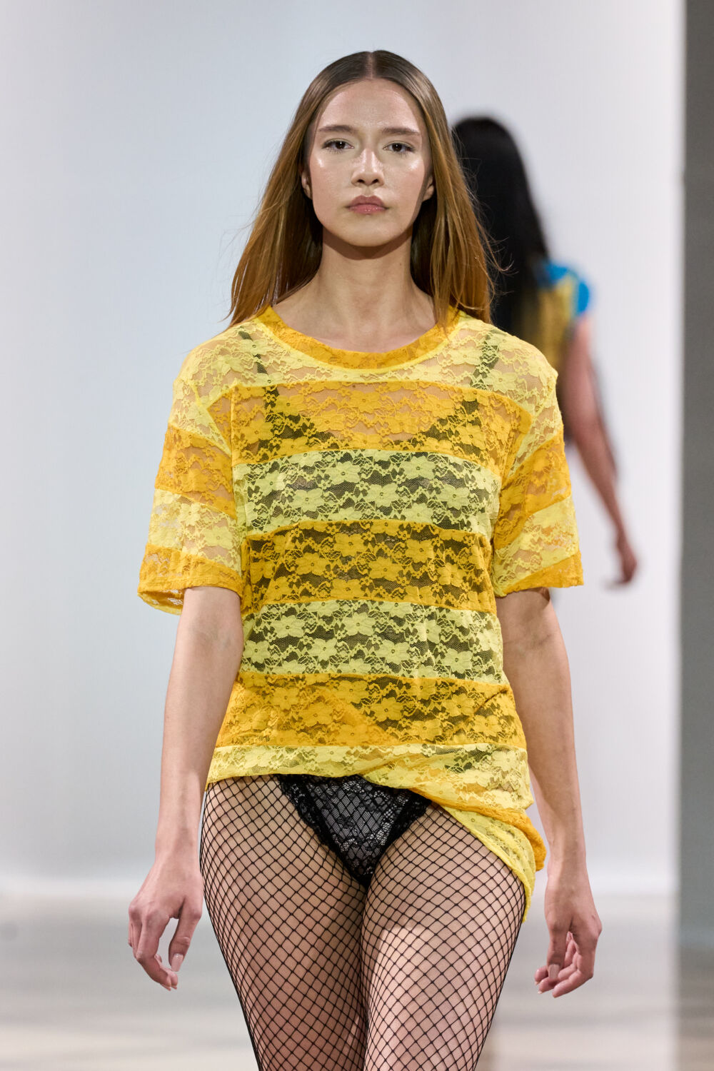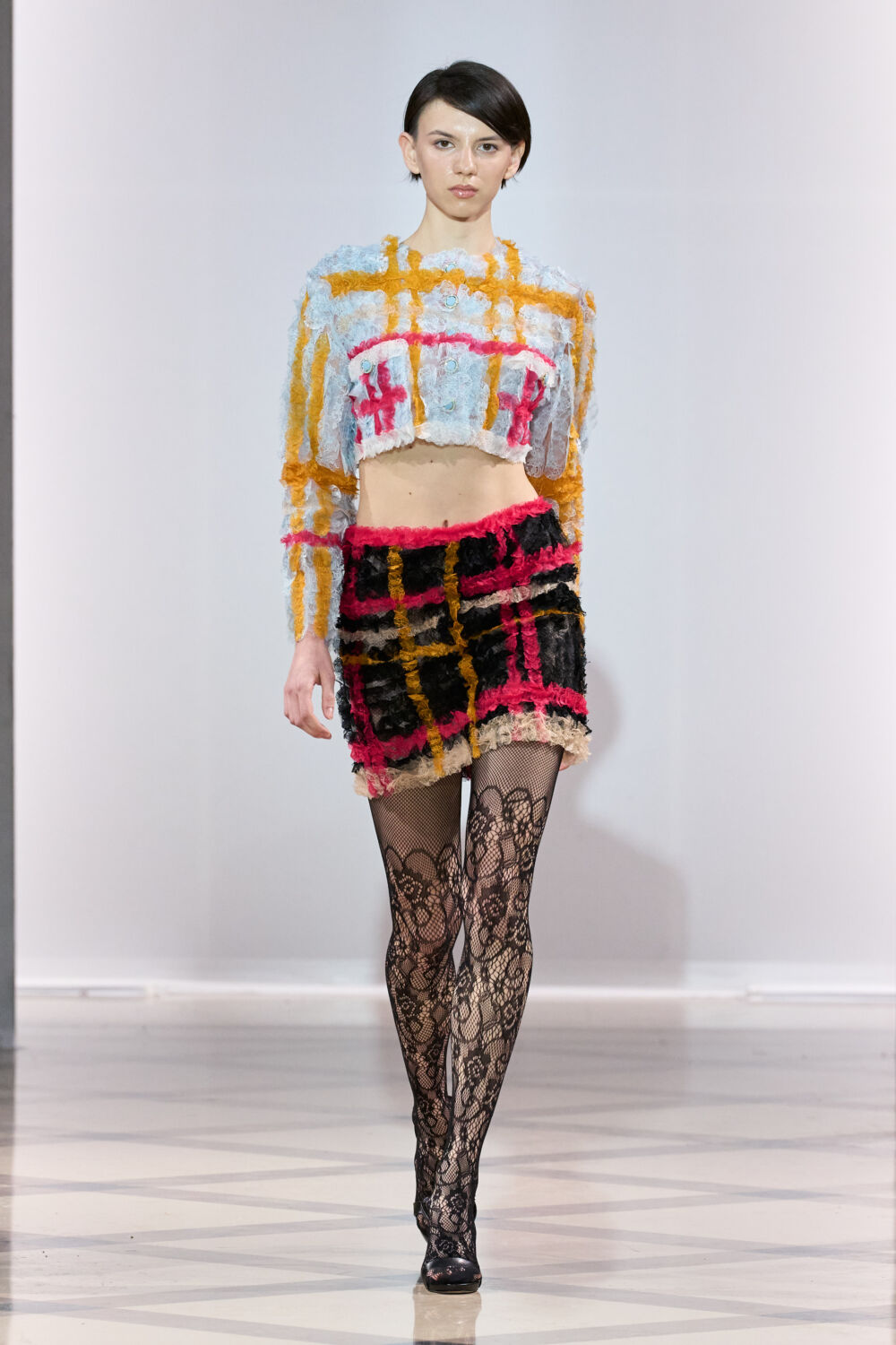 Alexandra Șipa, the London-based Romanian designer known for her innovative use of upcycled lace, made a striking debut with her AW25 collection, Water Under the Bridge, at Mercedes Benz Bucharest Fashion Week. Rooted in Romanian history and club culture, the show was a hauntingly beautiful exploration of memory and material. Lace – knotted, fringed, sequinned and layered – was transformed beyond recognition. Hand-cut lace sequins made from fabric scraps shimmered on tulle, while sculptural 3D knotted lace flowers added surreal, organic dimension. Fringe arcs inspired by a 1938 Madeleine Vionnet gown echoed the elegance of Queen Marie of Romania, contrasted with playful nods to 2000s Barbie films. Across 18 looks, the collection shifted between sultry loungewear and intricate, glamorous silhouettes, reflecting various stages of identity and life. With muses drawn from both personal relationships and history, Șipa’s runway debut offered a raw, ambitious reimagining of lace, redefining its place in contemporary fashion.
