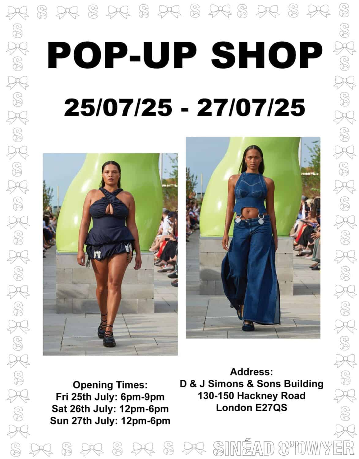 This weekend, Sinéad O’Dwyer – the brand celebrated for its inclusivity and unapologetic celebration of the body – is taking over Hackney with a pop-up shop running from Friday to Sunday at 130-150 Hackney Road. The event marks the launch of the new SS25/PF25 collection, giving fans the chance to shop the latest looks straight from the campaign. From mini belt culottes to fresh SS25 denim, there’s plenty for you and your girls to snap up. So what are you waiting for? Head down and get in on it! TD