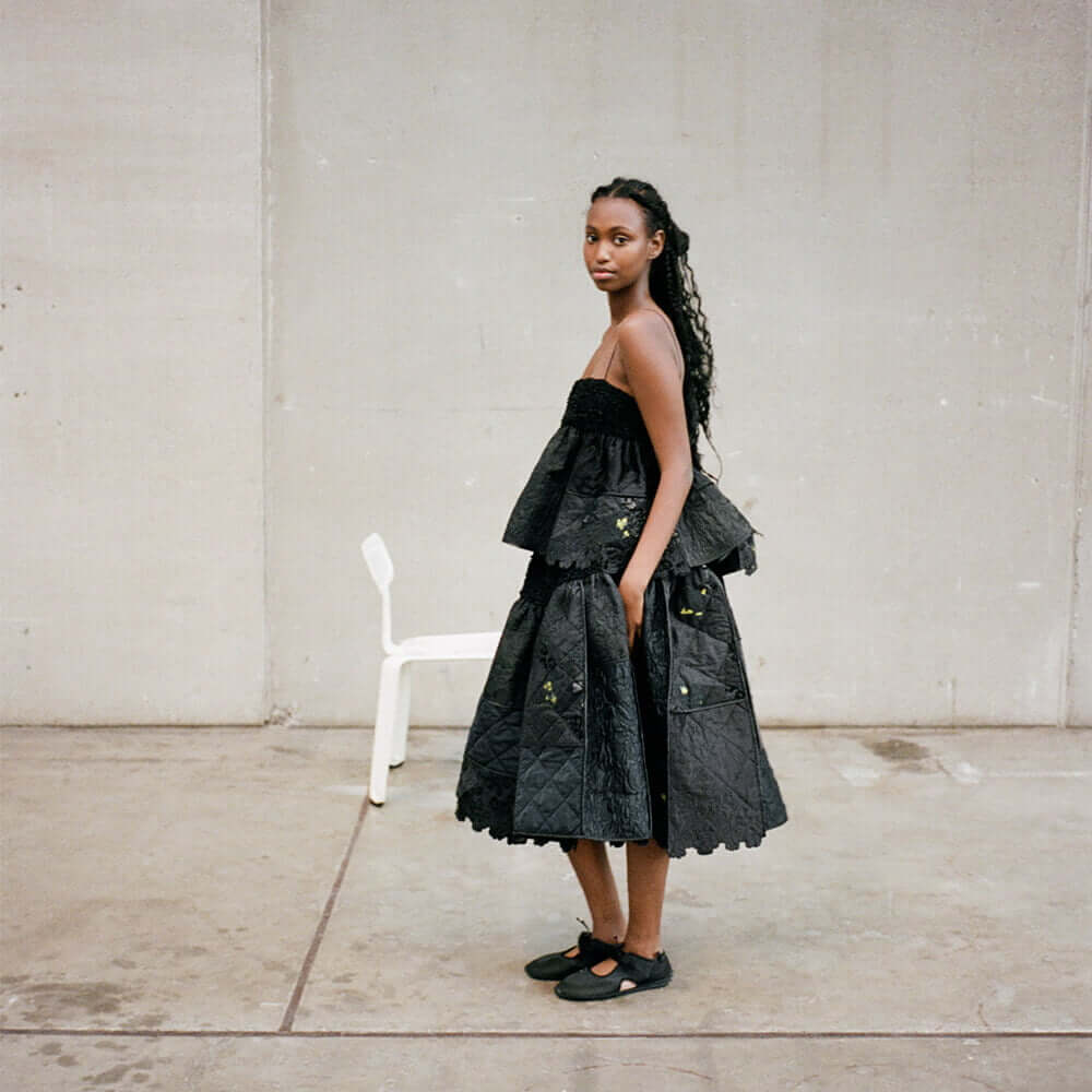 During Copenhagen Fashion Week, Cecilie Bahnsen launched its latest Encore collection presented in collaboration with Kirstine Meier Carlsen’s Studio X – the multidisciplinary laboratory and curated gallery-environment for play and discovery, of objects, concepts, colours and beauty linked through integrity and love. Since 2020 the Encore collections have embraced Bahnsen’s ongoing spirit of responsible initiatives, composing limited-edition clothes from up-cycled materials and reinterpreted leftover fabrics. The latest of the lot is the Patchwork Encore Collection, which takes fabrics from a number of previous seasons and shapes them into signature Cecilie Bahnsen silhouettes. Picture Scandinavian simplicity in black and white hues with supple touches of yellow beading threaded in. Don’t miss the exclusive pop-up exhibition at Studio X, Copenhagen, where the alluring Patchwork Encore dresses are complemented by curtains and bedding. Discover the exhibition here and collection here.
