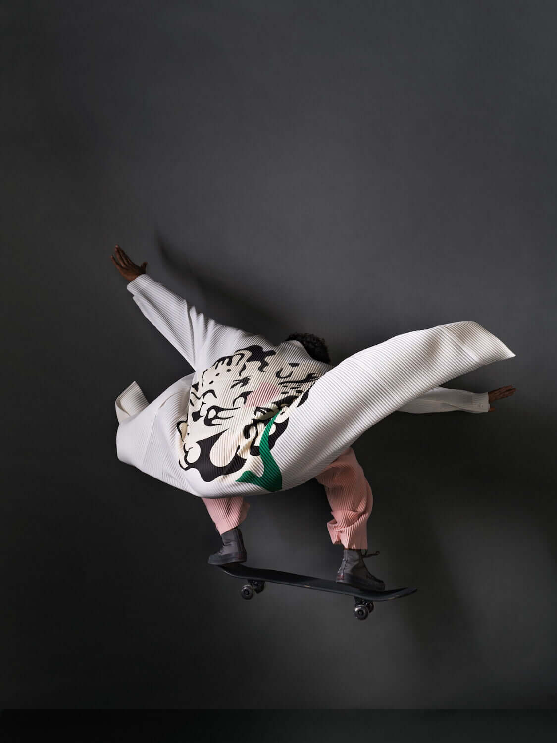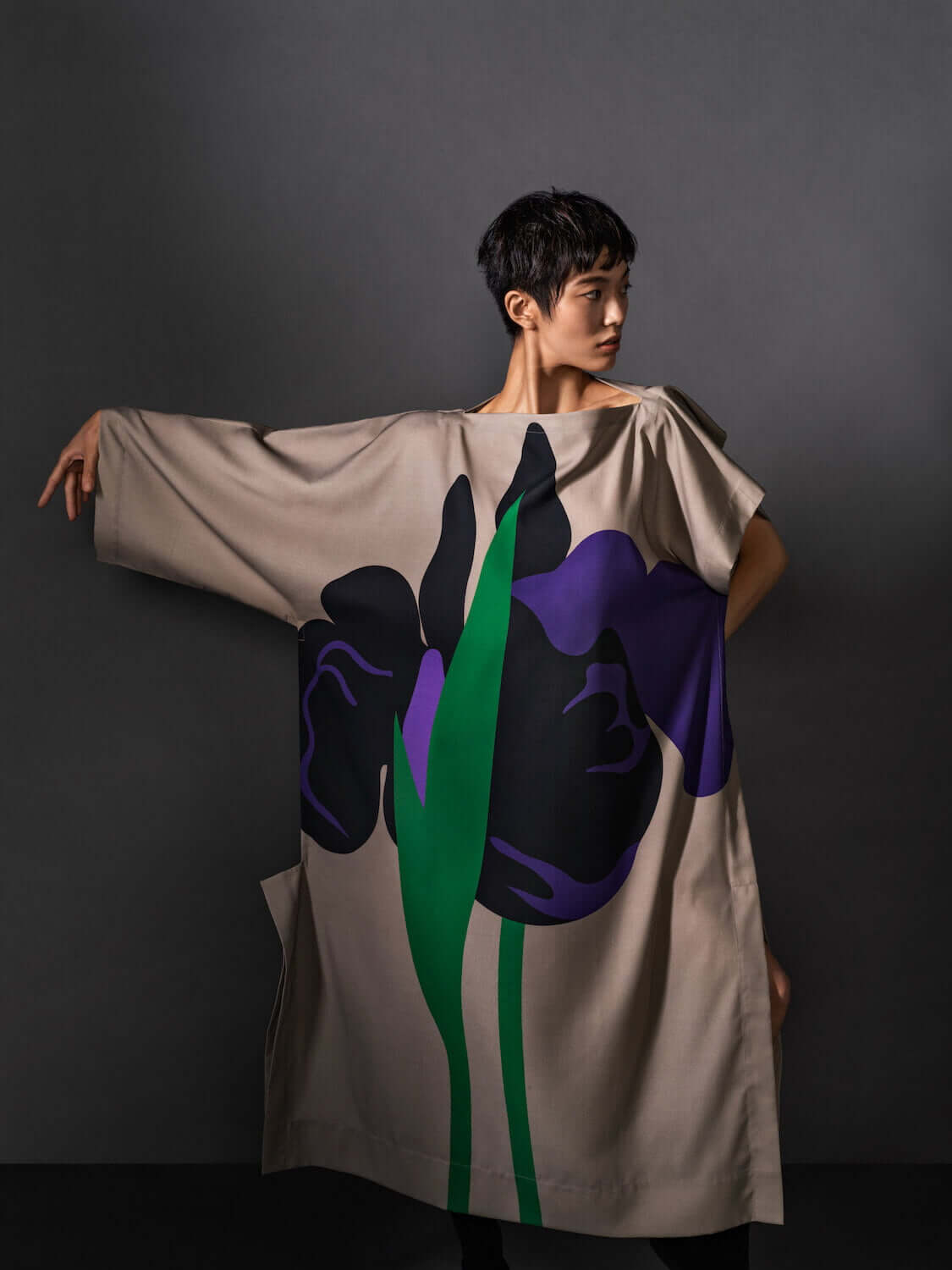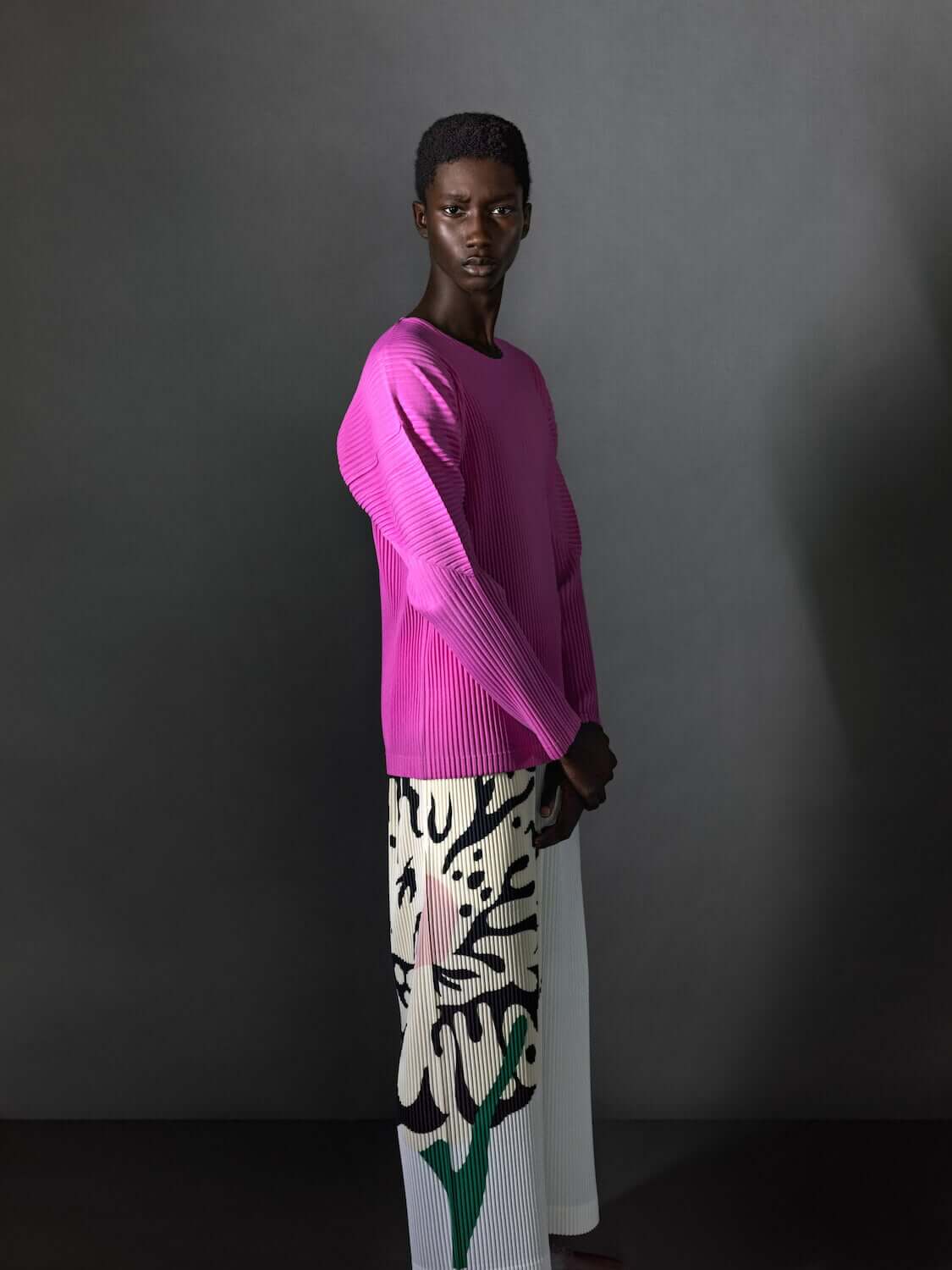 Bold and blooming flowers permeate the signature pleats of Issey Miyake’s latest drop, envisioned by Japanese graphic designer Ikko Tanaka. Since 2016, Miyake has tapped into Tanaka’s peerless and prolific body of interdisciplinary work and now, reaching beyond the effervescent colours and patterns of the artist’s canon, his unique graphic compositions are applied to the construction of the joyful garments. An embodiment of easy, everyday elegance, Tanaka’s sartorial interpretations will be available to buy in-store at Issey Miyake’s London flagship from March 1 and are discoverable online now.