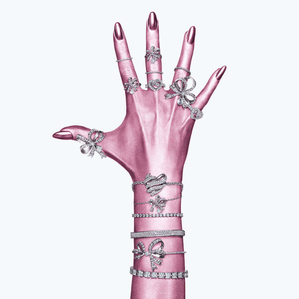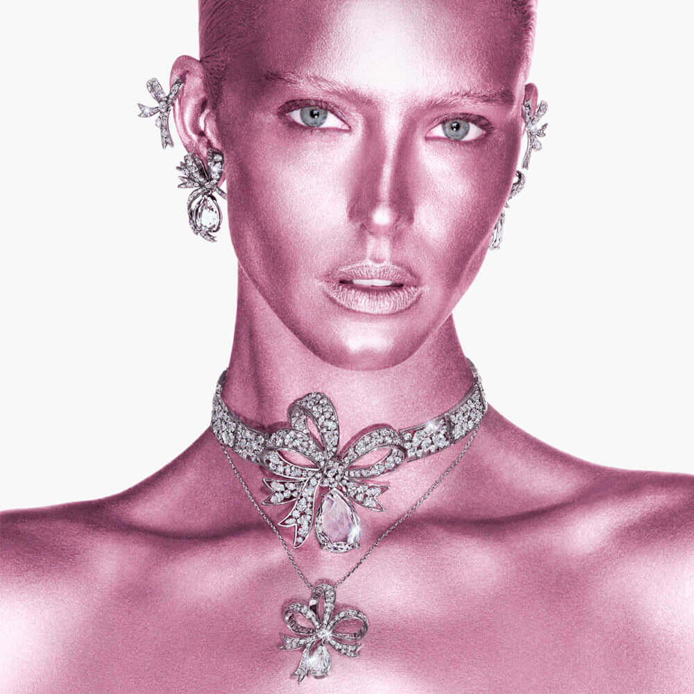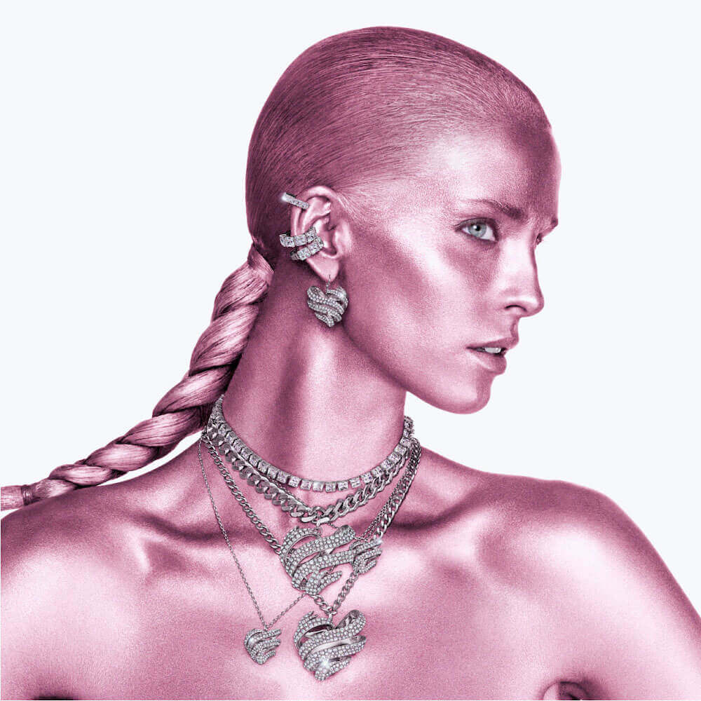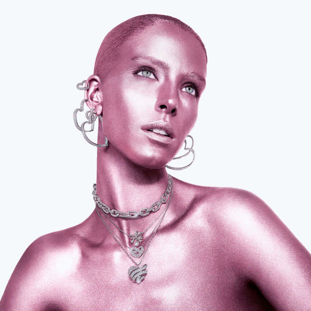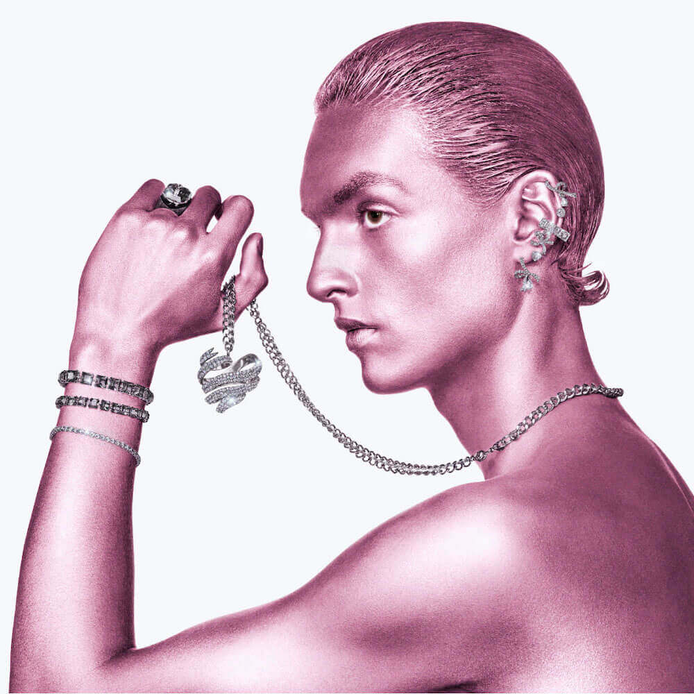 Ignited in shimmering metallic pink, Swarovski’s amorous Valentine’s Day collection and campaign sets love alight. Tying lovers and friends together with a ribbon-inspired theme, Swarovski’s glittering Volta family comes to the fore with clear crystal heart pendants, bracelets, delicate bow and ‘Love’ necklaces, chokers, bangles and earrings galore. Elsewhere, radiant heart-shaped pendants from the Matrix family invite wearers to express themselves as Swarovski turns passion pink. Shop now.