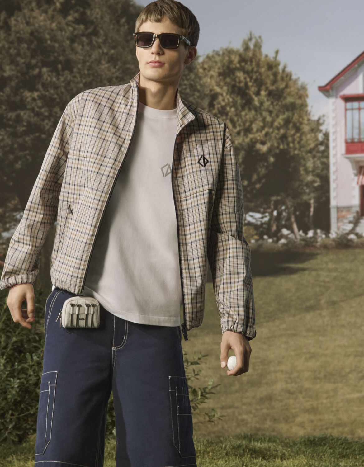 Dior tees up a new era of fairway fashion with a lifestyle capsule that fuses uptown prep with Parisian polish. Polo shirts, V-neck sweaters and checked Harringtons blur the lines between golf course and city style, while retro sportswear staples – velvet tracksuits, windbreakers and oversized CD Diamond prints – add a playful twist. Two-tone leather bags and a bespoke Dior golf set complete the look. And the shoes? Check-print sneakers with fringed tongues, a chic nod to classic golf kicks. Game, set, Dior.