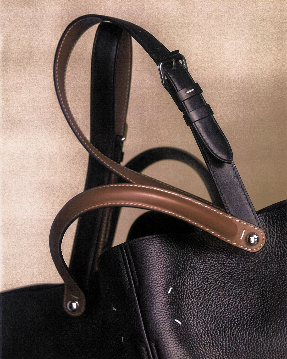 Maison Margiela presents The Dress-Age – a bag where artisanalogy meets avant-garde fluidity. Inspired by mid-century bourgeois gestures, it’s more than an accessory; it’s a shape-shifter. A tote, a hobo, effortlessly adapting in black, ivory, graphite and burgundy. Crafted from pebbled calfskin with a camoscio goatskin suede lining, The Dress-Age reinterprets Margiela’s eternal dress codes, fusing classic craftsmanship with modern versatility. Shop here.
