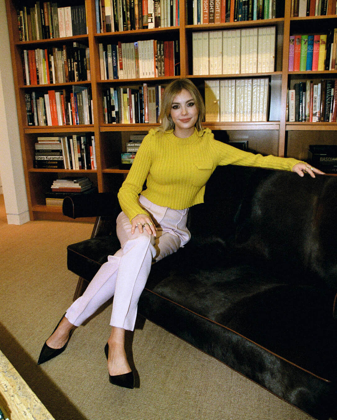 Although she only began painting professionally five years ago, Canadian-born Weyant is one of the most talked-about young artists in America right now. She is also in a romantic relationship with her gallerist, 78-year-old Larry Gagosian, one of the most powerful people in the art world (and whose library the image that accompanies this story was taken in). These intertwined facts have been deeply consequential for the painter who was dubbed the “millennial Botticelli” by The Wall Street Journal last year for her figurative works that appear more akin to Early Renaissance or the Dutch Golden Age than contemporary art. Summertime (2020), for instance, Weyant’s ethereal and lonesome mediation on the human interior, was first acquired in 2020 for $12,000. Last May, it resold for $1.5 million at Christie’s. Later on in the year, her first show for Gagosian in New York, Baby, It Ain’t Over Till It’s Over, was an overnight hit: Not only was it Instagrammed everywhere, all the pieces immediately sold. Marc Jacobs, who referenced one of her paintings featuring pearls for his autumn/winter 2023 fashion collection, attended opening night, as did Venus Williams and the influencer Eileen Kelly, both of whom were subjects of the works on view. And yet, with all these successes and social acclaims, the artist has had her fair share of nepo-slinging and misogyny-veiled criticism too. “I don’t entirely disagree with some of the things people have said,” admits Weyant, whose success has been questioned because of her love life and whose works have been devalued for the way that their maker looks.