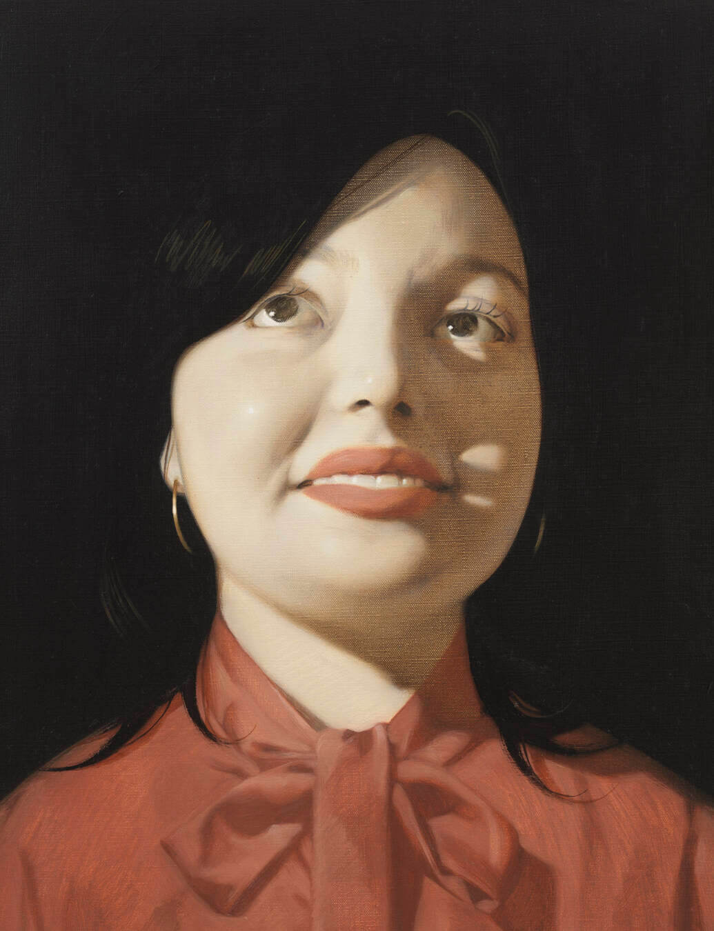 from left: Eileen in Red, 2023; oil on linen, 24 1/8 x 20 1/8 x 1 1/8 inches (61.3 x 51 x 2.9 cm); Early Winter, 2023; oil on canvas, 24 x 18 x 1 1/8 inches (61 x 45.7 x 2.7 cm)