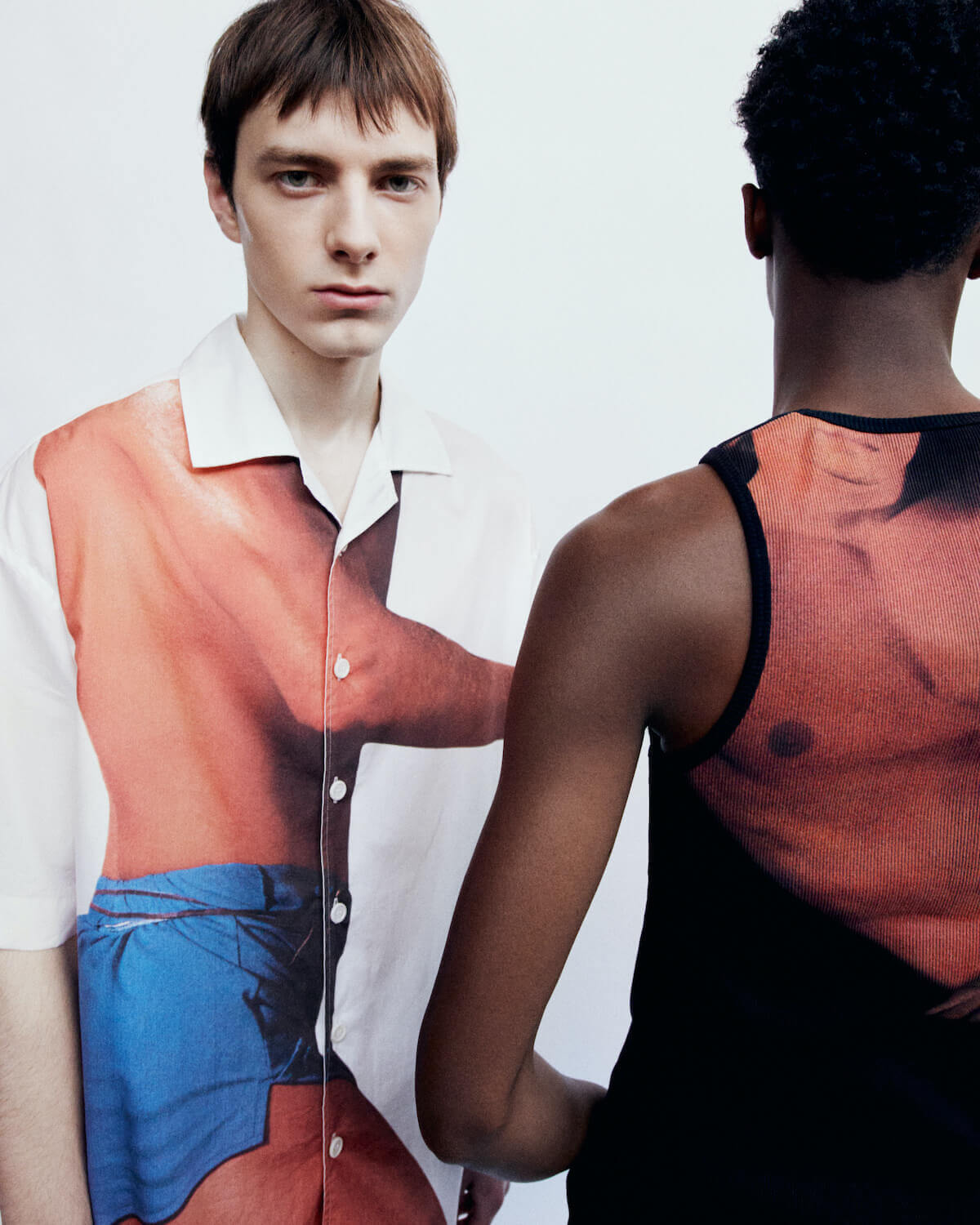 Originally debuting a number of the designs as part of the London label’s AW23 menswear and PF23 womenswear collections, the capsule expands on the original offerings, celebrating Pride Month in a brashly brilliant way. By deliberately cutting off the heads of their swole subjects, each piece is predetermined to ensure every bulging bicep and sexy six pack can be seen in all its gladiator-like glory.