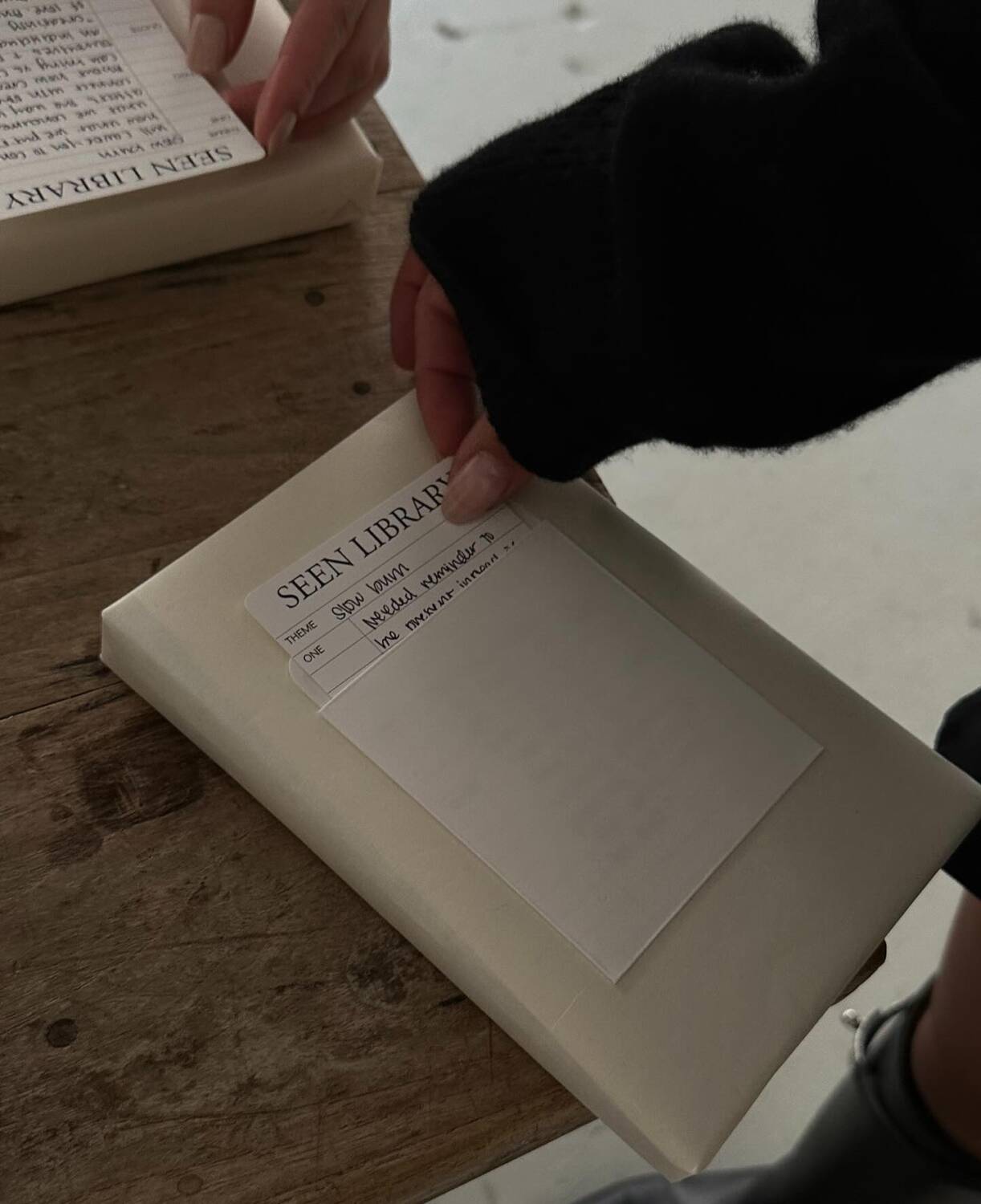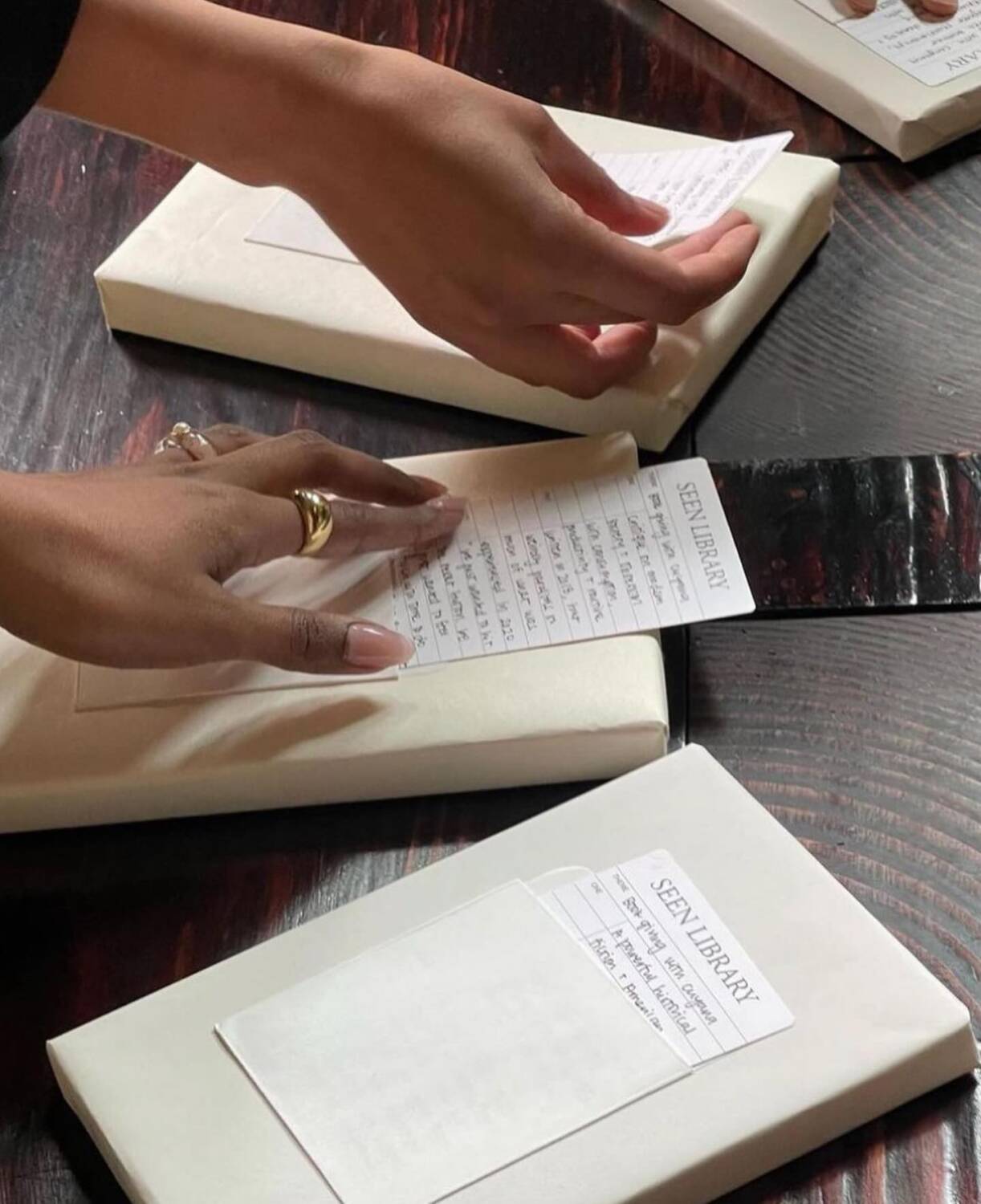 Thematically pivoting around the concept of ‘Close Encounters’, each read centres “key interactions or experiences that have a deep impact on the characters and the narrative, often involving meaningful moments of connection or confrontation.” Meanwhile every book will come wrapped up in Seen Library’s signature “creamy” paper, obscuring the front cover but revealing the soul. Decorated exclusively with a library card of hand-written clues, guests won’t be judging these books by their covers – they’ll be making their selections based on intrigue alone.