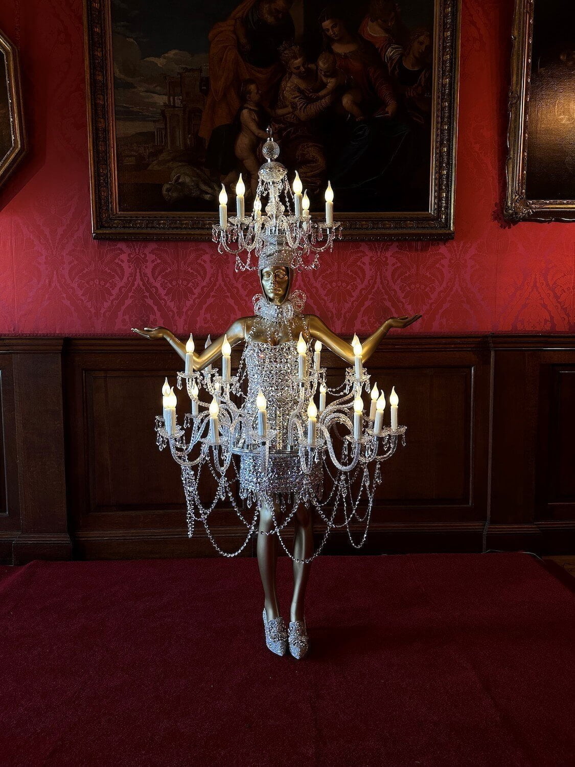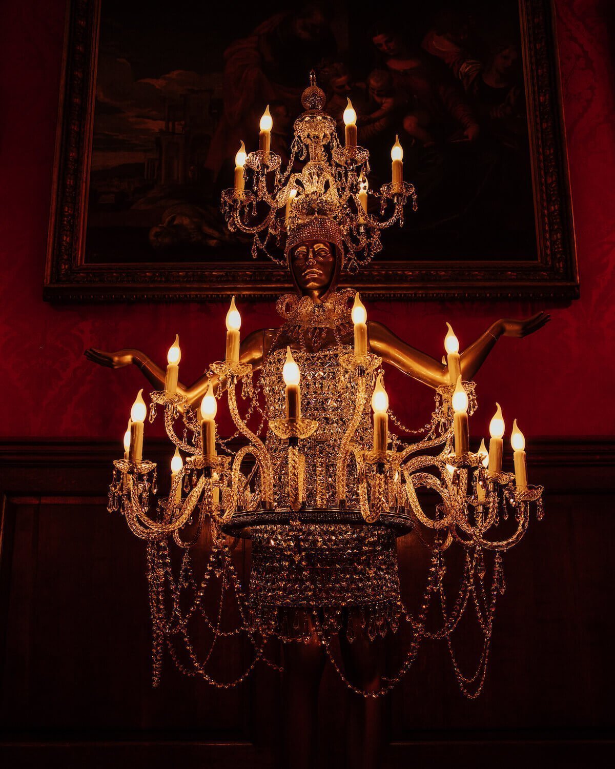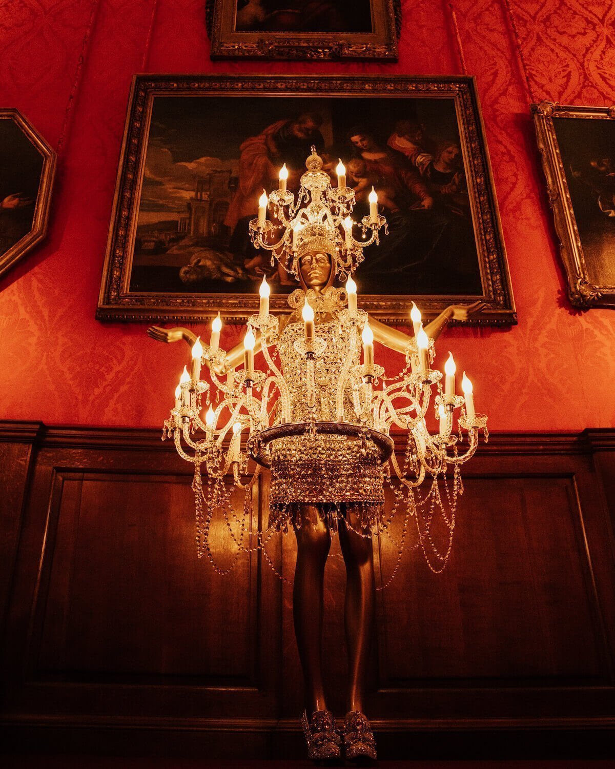 As the 2023 Met Gala approaches, feel notions of its nostalgia within the palace’s grand halls as the bejewelled and bedazzling Moschino chandelier dress – designed by Jeremy Scott and worn by Katy Perry at the 2019 Met Gala – is presented. The Swarovski covered ensemble is the perfect example of bourgeois elegance and flamboyance. Scott’s AW20 Marie Antoinette inspired dress is also on display with its cascading 18th century ruffles and pastel hues.