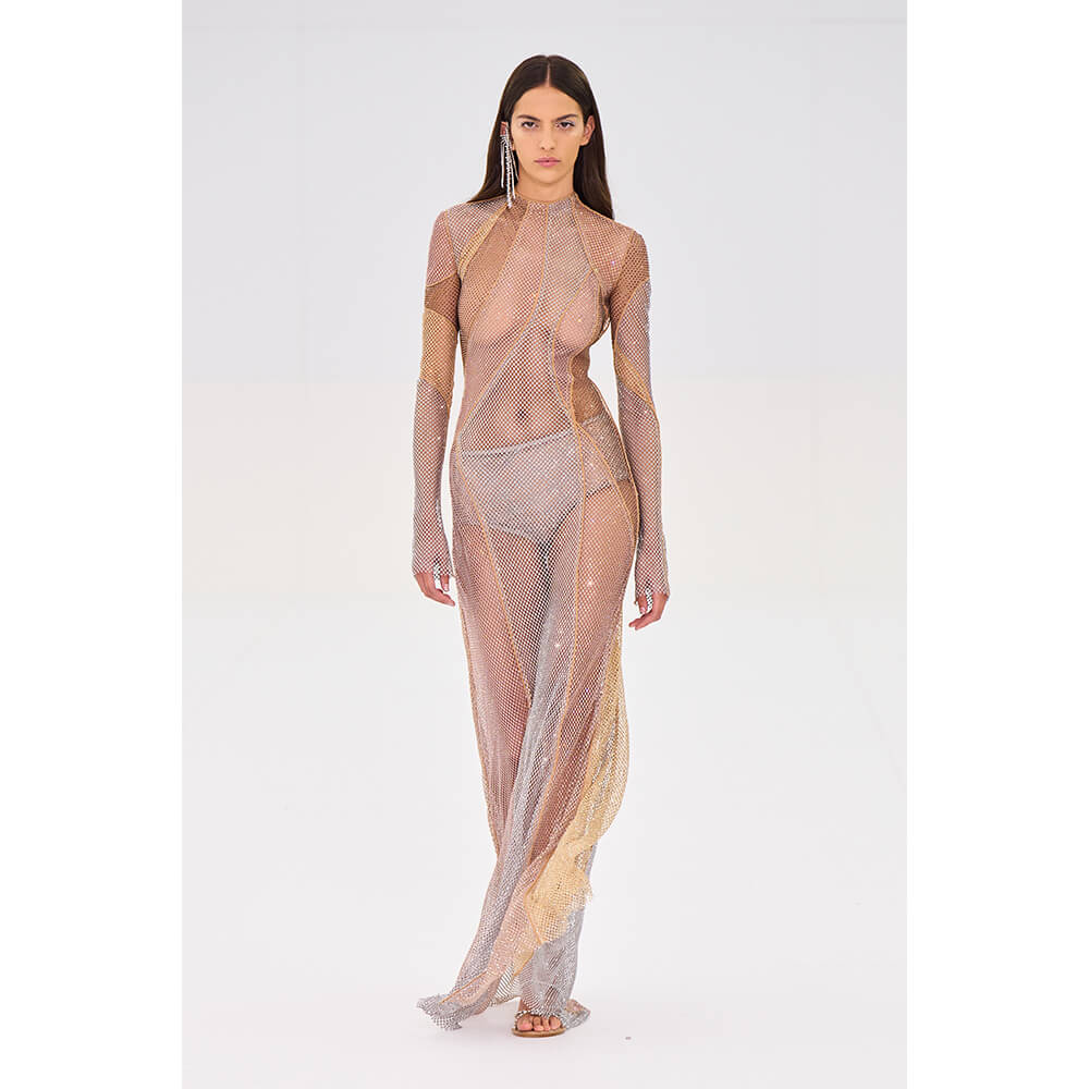 Elsewhere, Rousteing embraced the task of tackling the Jean Paul Gautier archive. The Balmain designer recreated Madonna’s infamous topless JPG outfit from the 1992 AmfAR Gala and even interpreted the couturier’s cage and corset structures in Balmain-esque armour dresses.