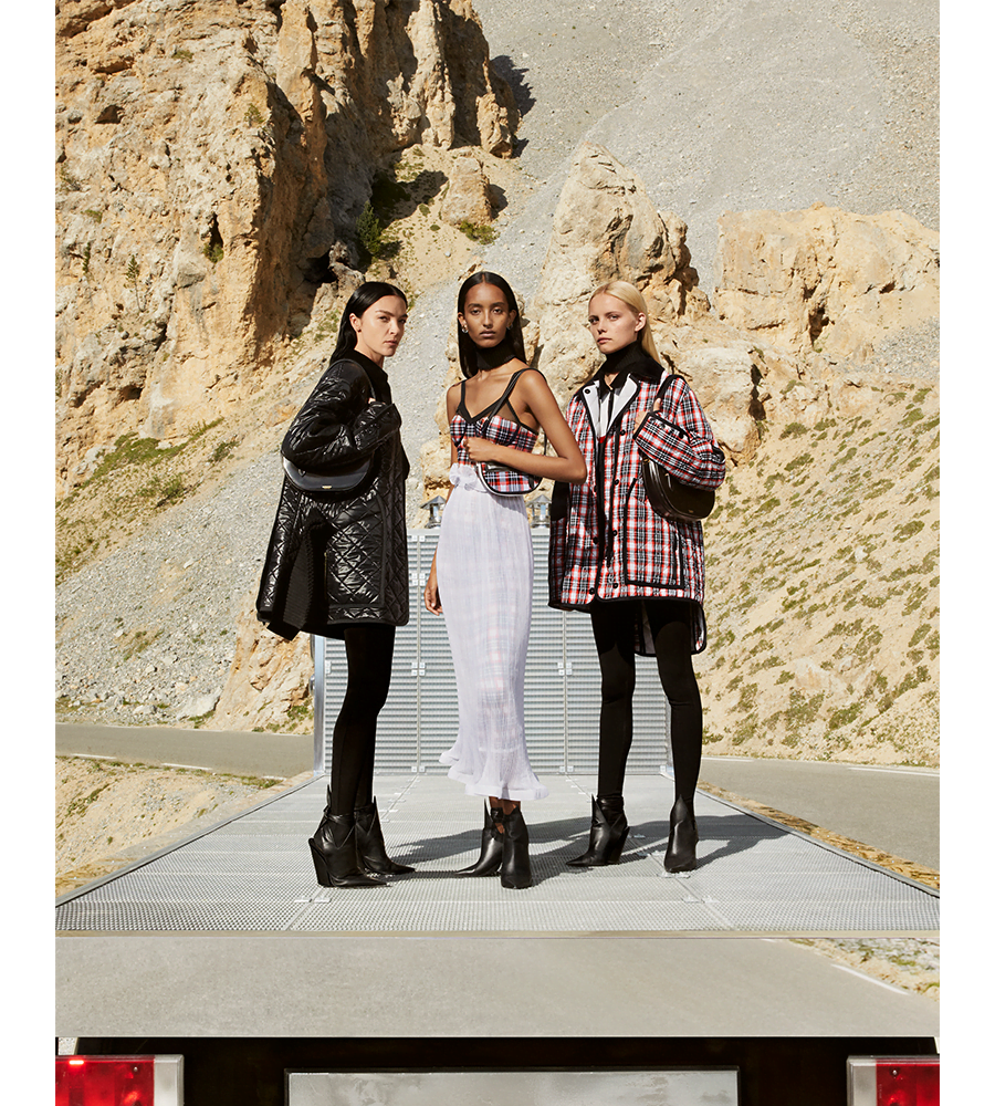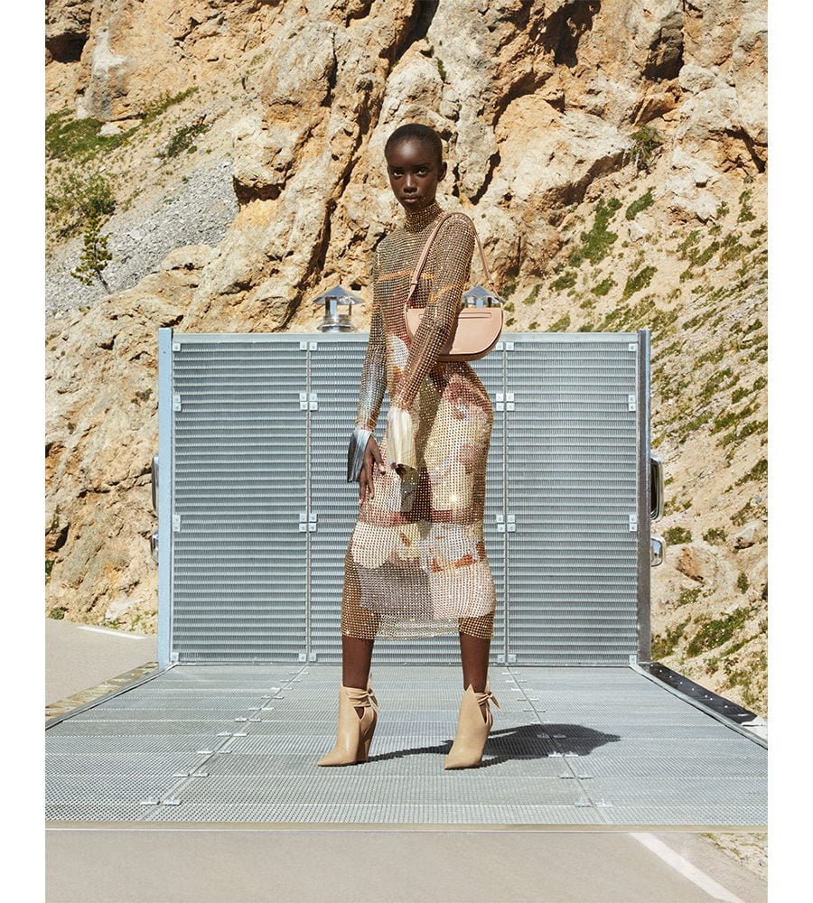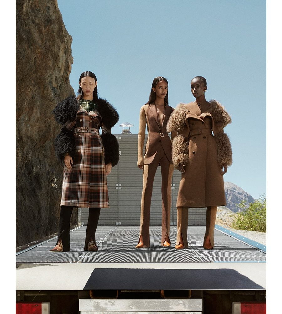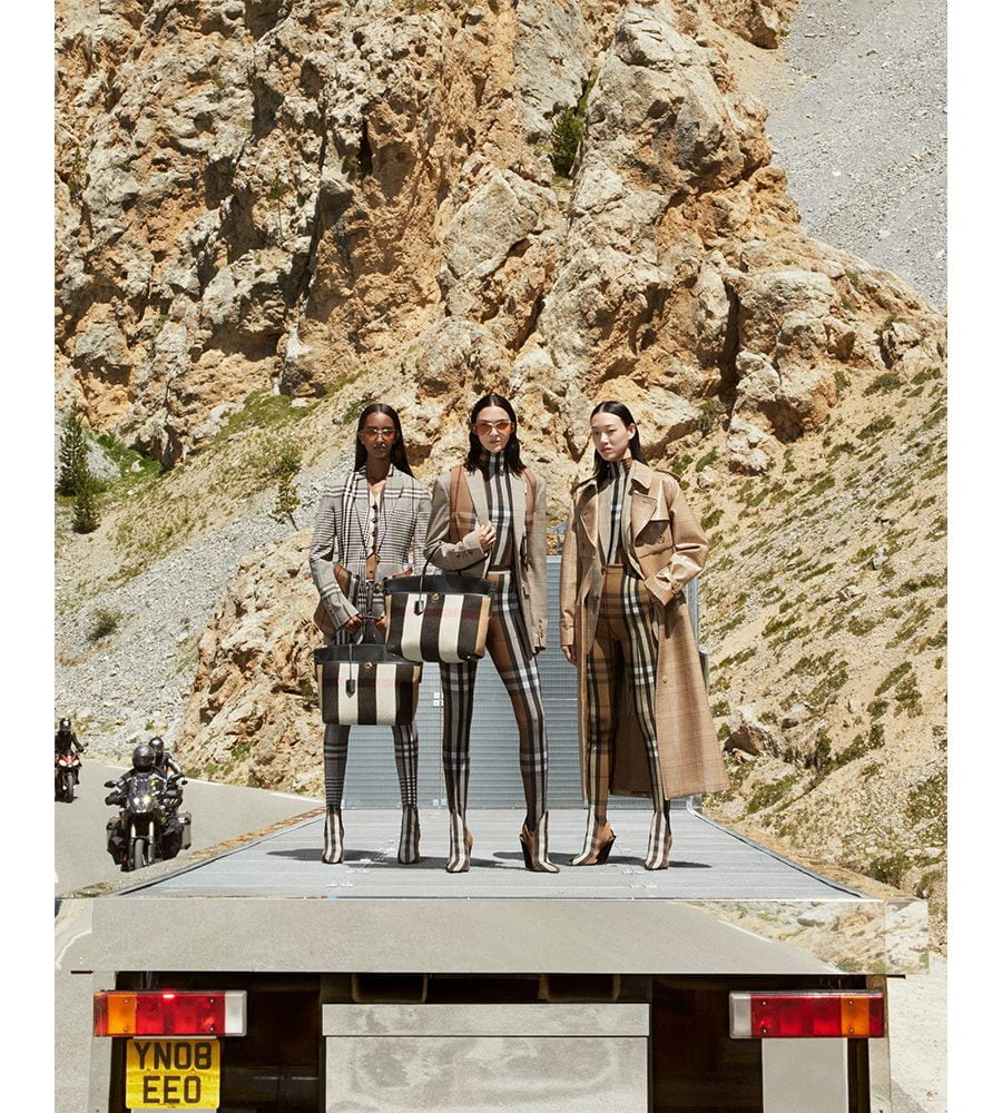 The campaign’s immense and never-ending scale reinforces that of nature, whilst the collection itself combines the iconic neutral Burberry colour pallette and tartan with new shapes and silhouettes, imitating nature’s constant evolution. The Burberry gang are paraded around the grand landscape on a mirror-plated lorry (seatbelts not included) and come armoured in everything from tartan leggings and puffa jackets, to bedazzled, beige gowns, the new Olympia bag, and of course new adaptations of the staple Burberry trench. This is a ride we never want to get off.