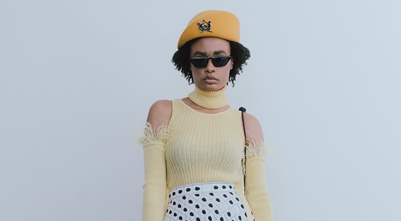 He unveiled the collection through a short fashion film titled Counter Intelligence, which was narrated by ex-spies of South Africa’s apartheid government. In favour of stuck-on moustaches, jet black lycra or dodgy looking trench coats, the former LVMH Prize winner told a story of elegance and refinement. His women wore ribbed knits in lemon yellow and ivory, worn with gloves accented with marabou feathers. The designer’s Sisterhood emblem stamped structural berates and polo dresses worn with harnesses.