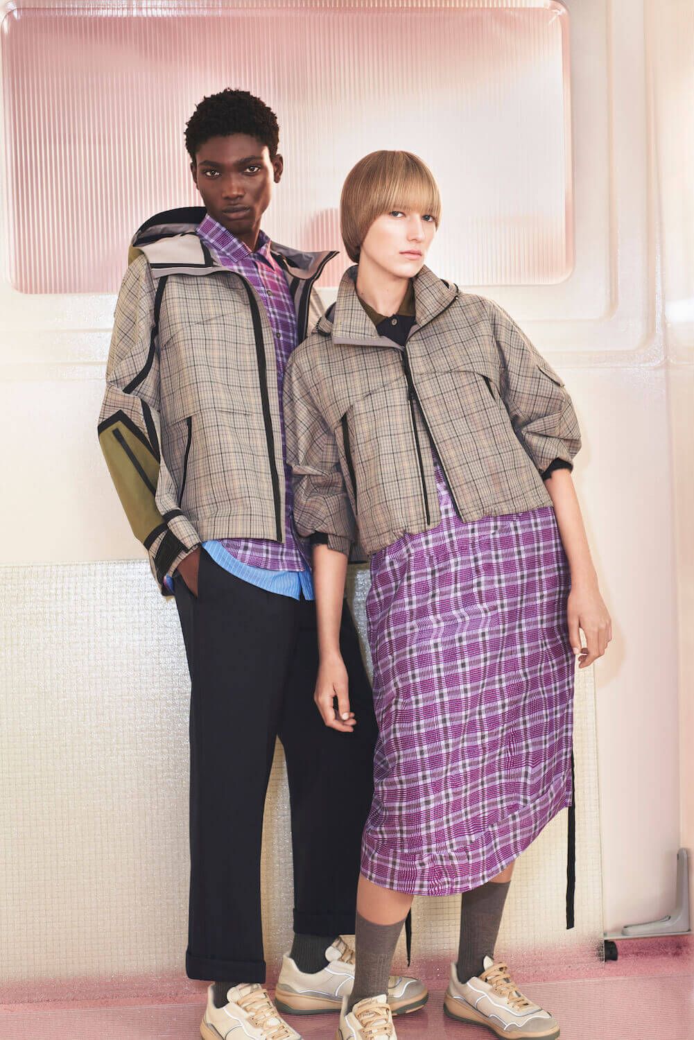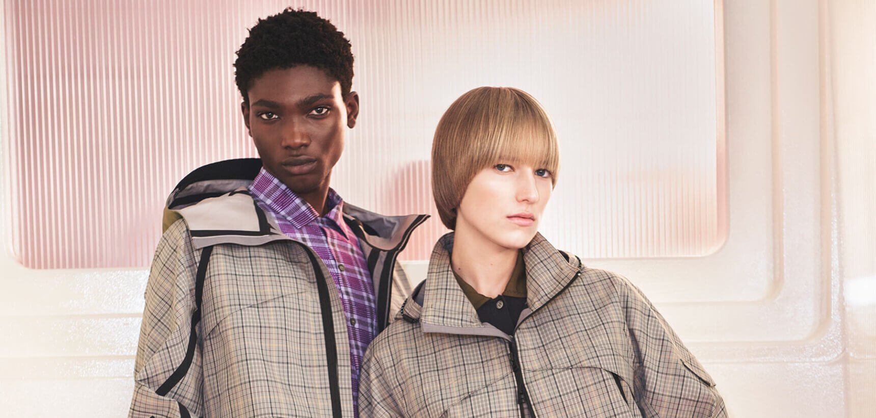 So, coordinating men’s and women’s versions of a single style, such as the women’s cropped bomber which reinterprets the men’s parka with “Gore-Tex backed, taped seams, and an amazing sleeve construction done with darts”, a sort of mirror-effect springs into existence. “Especially in this collection there’s a lot of cross-over between boys’ and girls’ clothes,” the designer says. “The same fabrics, the same constructions and colours – just the proportions are slightly different.”