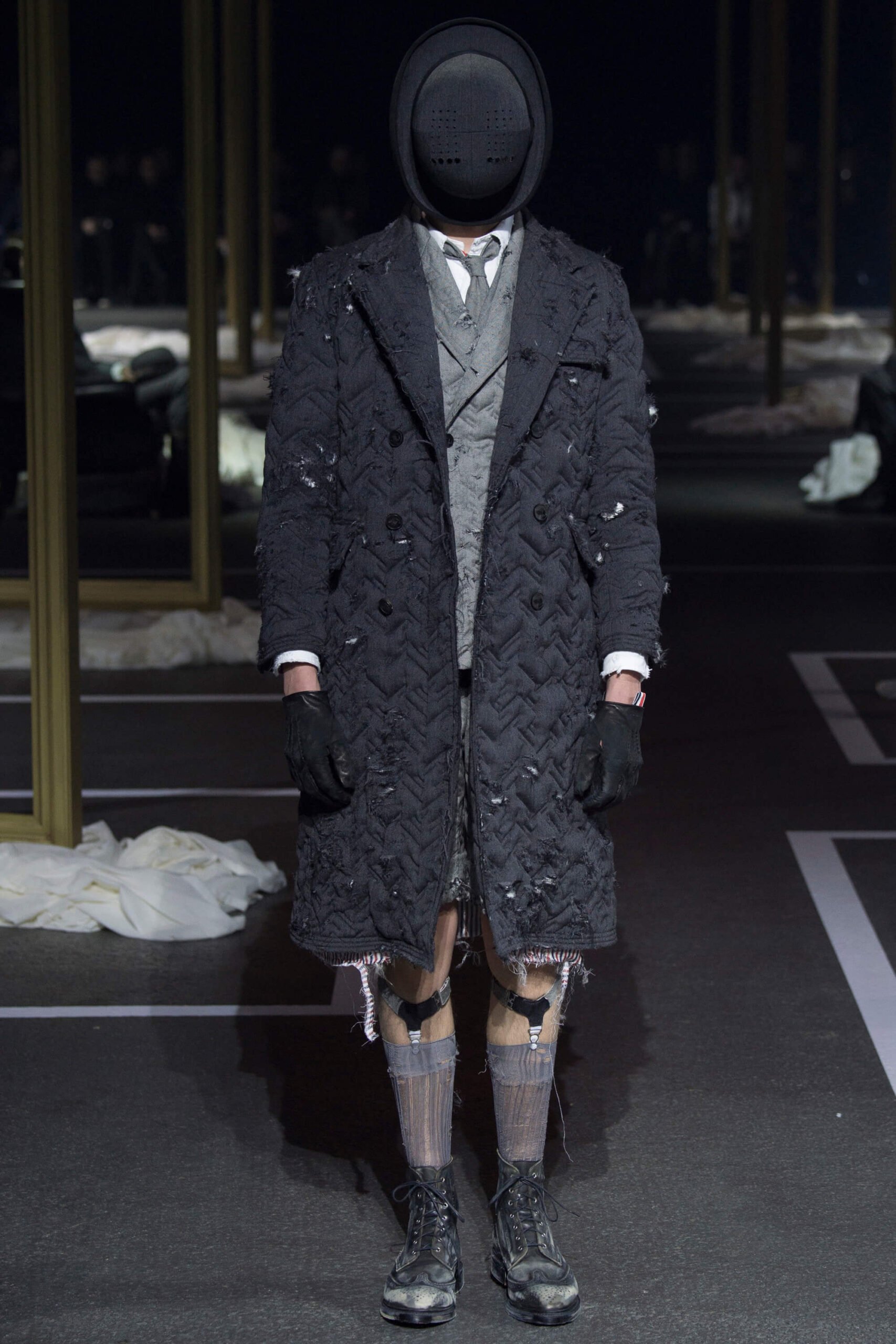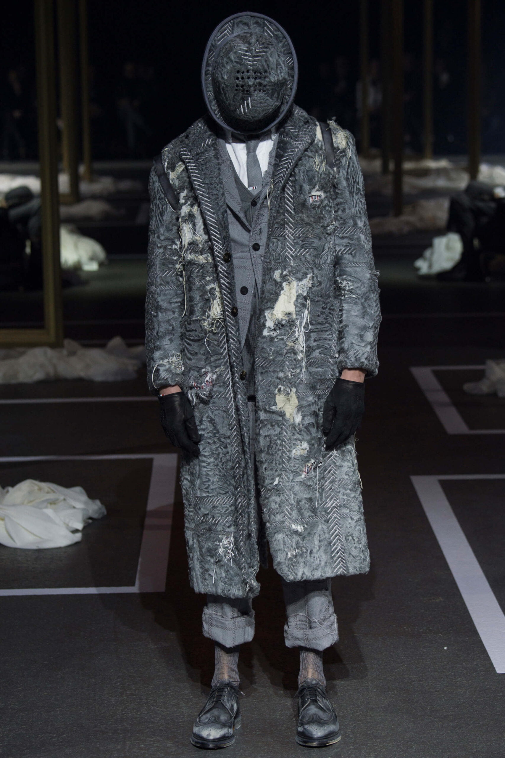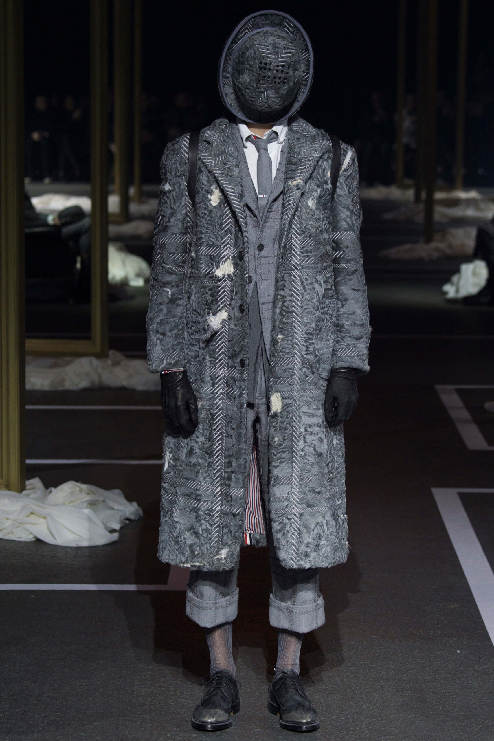 A besuited dour duo yanked dust sheets off regency gilt frames, armchairs and a crystal chandelier as the opening act to a Thom Browne show that took memory as its central theme. We don’t mean the “Cats” soundtrack, mercifully, but the idea of men harking back ultimate their youth and remembering sartorial days past. What that meant was each outfit in trip, unraveling backwards from raggedy man, through slightly scuffed, to box-fresh. Most designers have been going the other way, pulling apart. It’s typical of Browne’s perversity that he’d want to reconstruct as everyone else deconstructs.