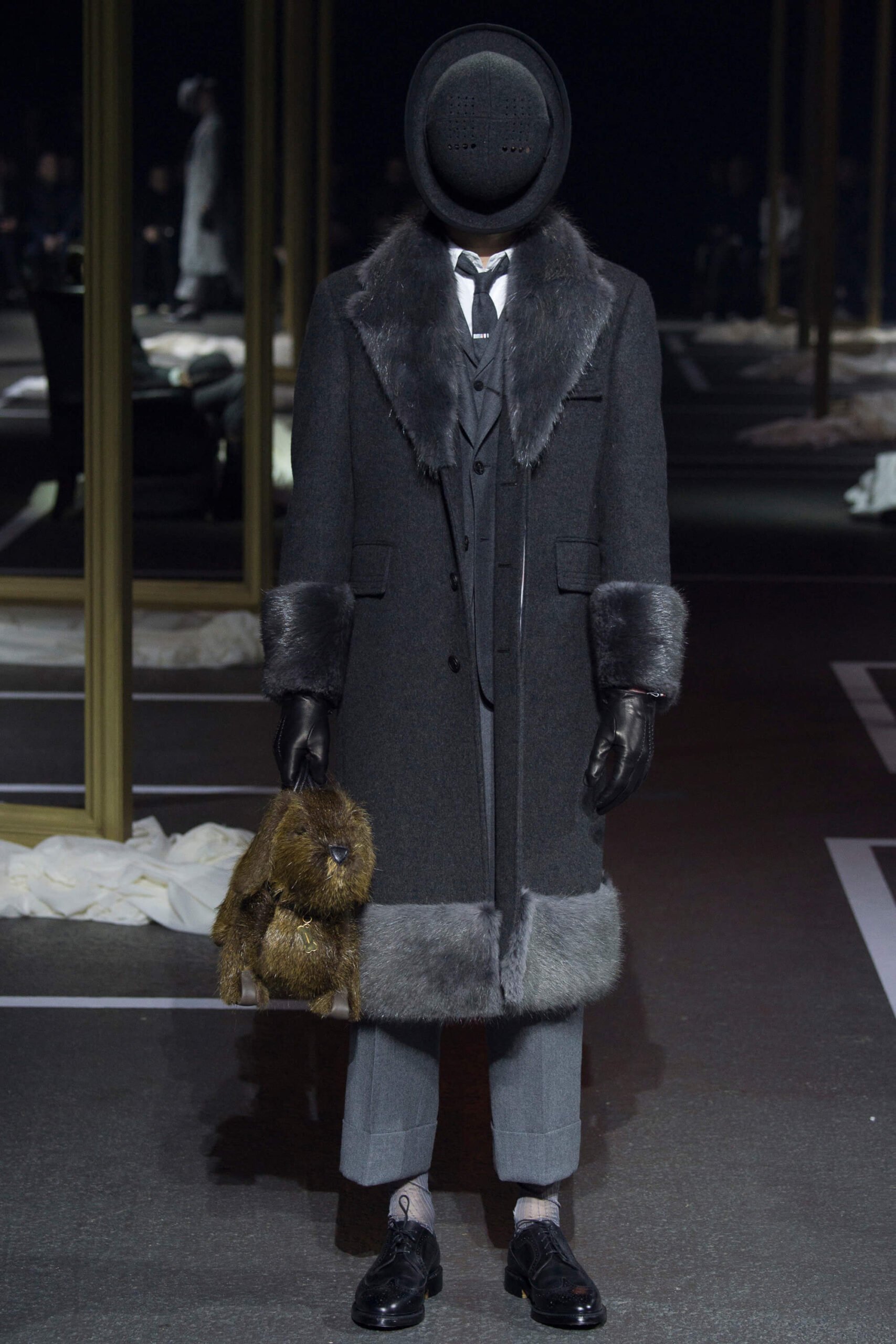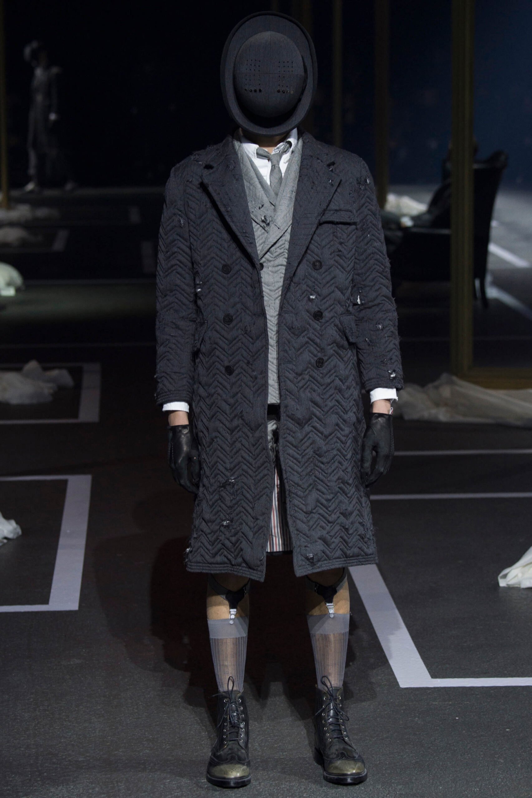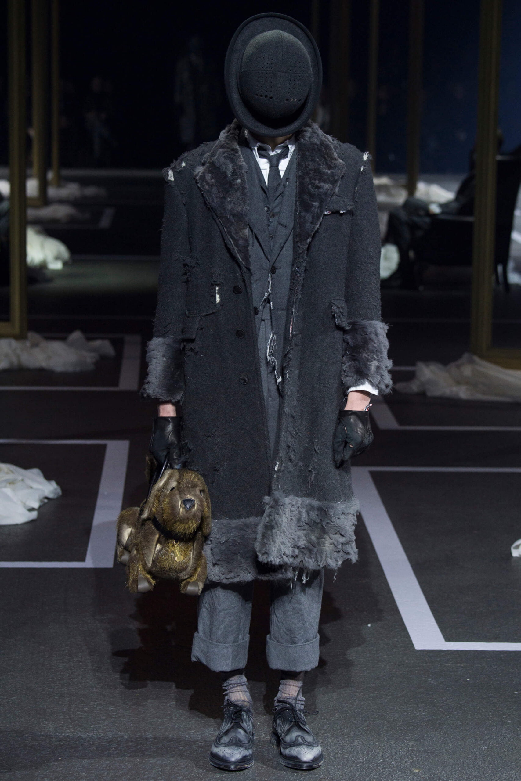 A besuited dour duo yanked dust sheets off regency gilt frames, armchairs and a crystal chandelier as the opening act to a Thom Browne show that took memory as its central theme. We don’t mean the “Cats” soundtrack, mercifully, but the idea of men harking back ultimate their youth and remembering sartorial days past. What that meant was each outfit in trip, unraveling backwards from raggedy man, through slightly scuffed, to box-fresh. Most designers have been going the other way, pulling apart. It’s typical of Browne’s perversity that he’d want to reconstruct as everyone else deconstructs.