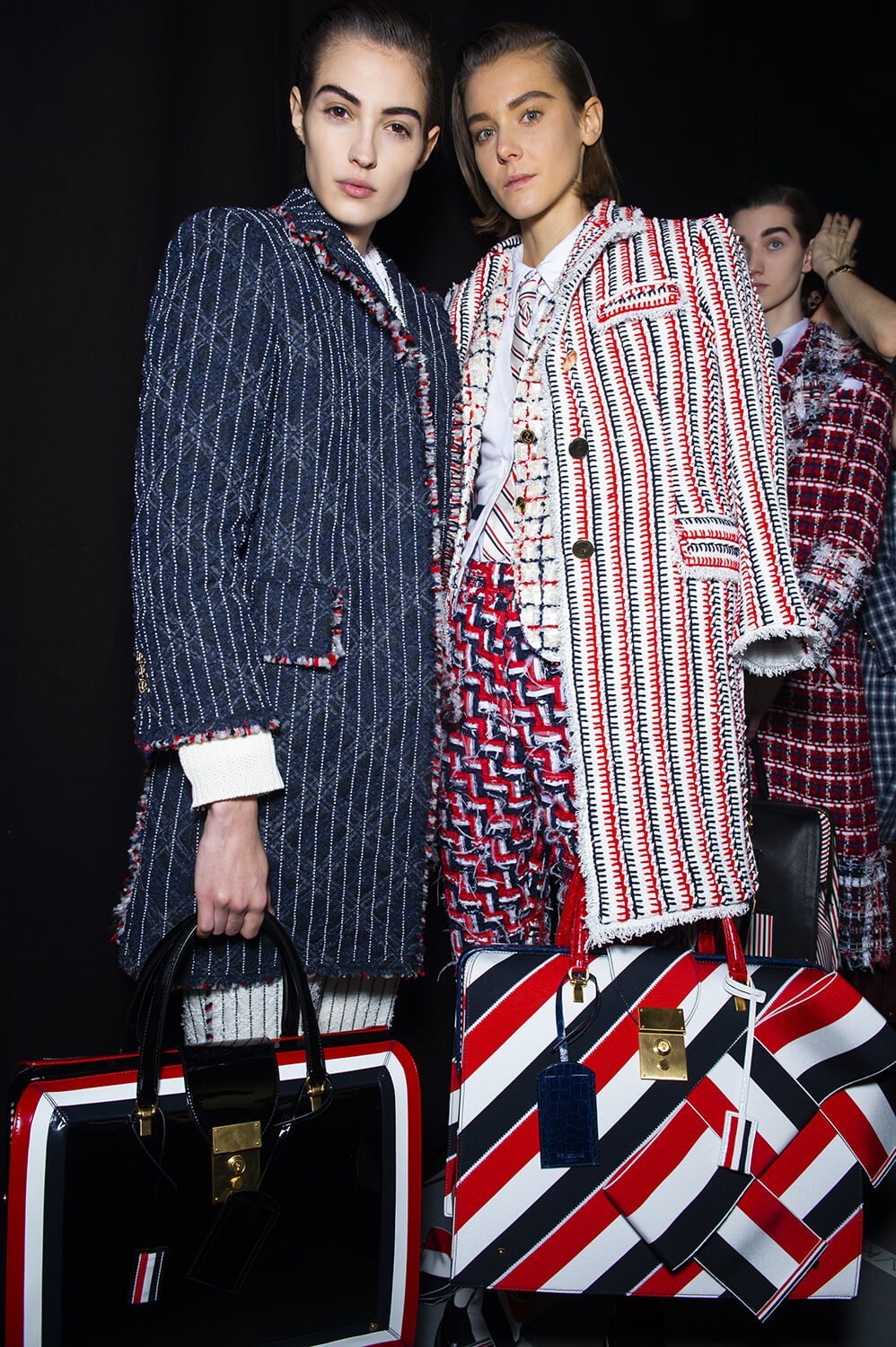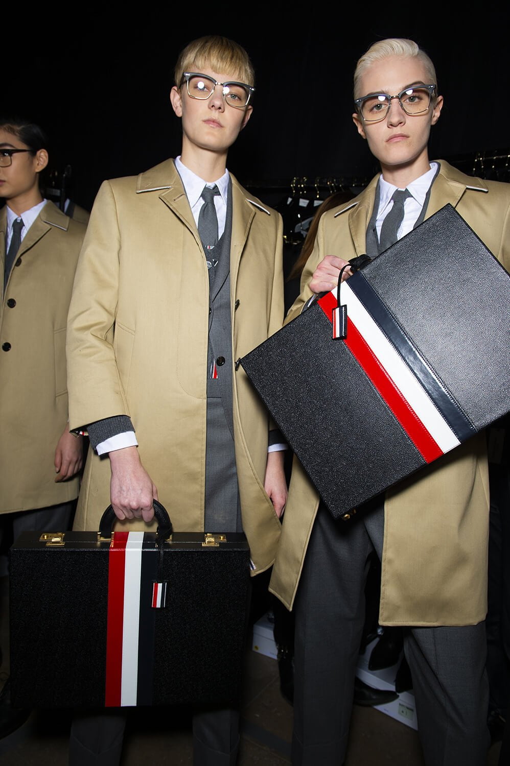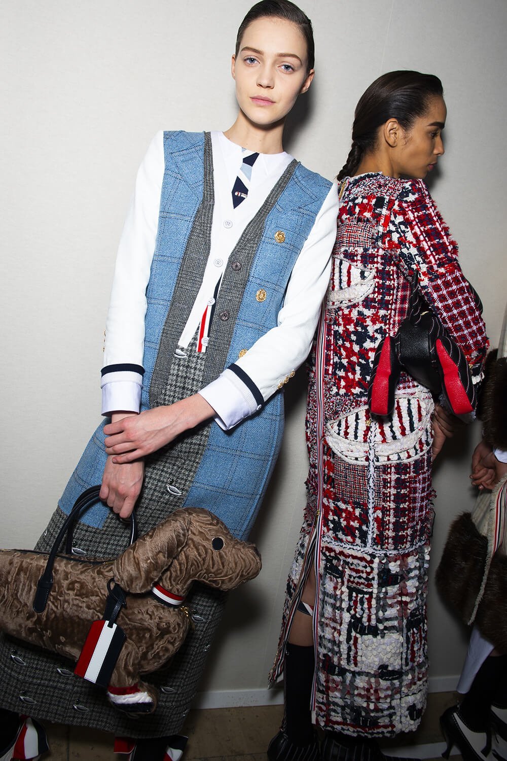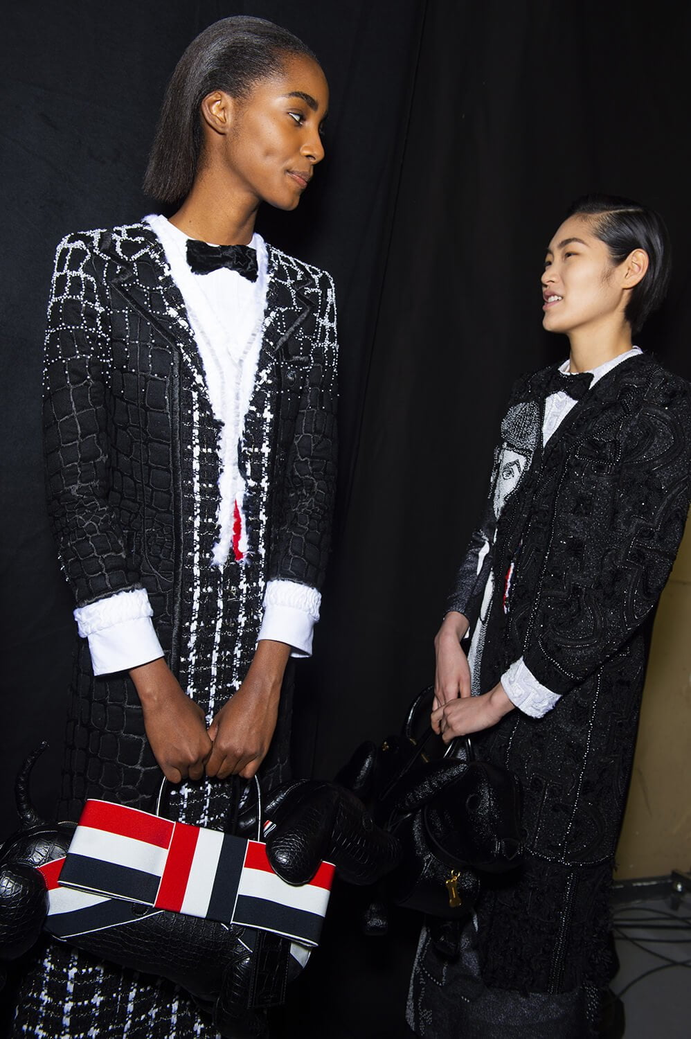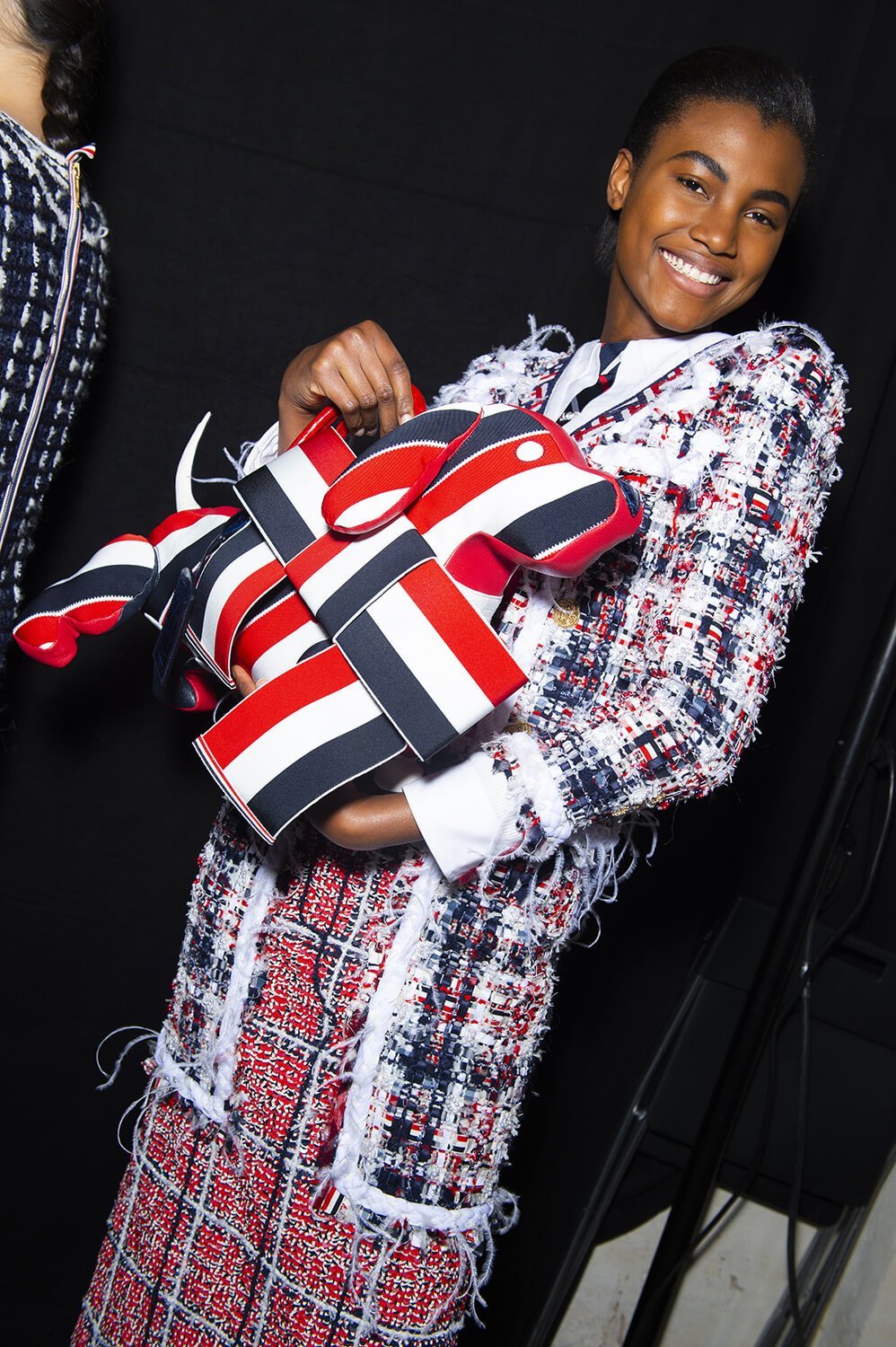 What will Thom Browne do next? His shows have become extensions of his thought process and creative brain. We’ve had ‘60s trips to bonkers-land complete with watering-can-touting elves. We’ve had cling-film wrapped models, and huge planets floating above our heads.