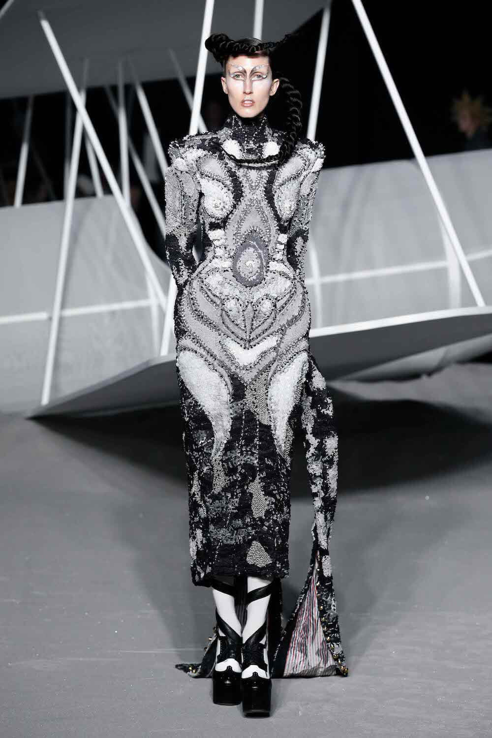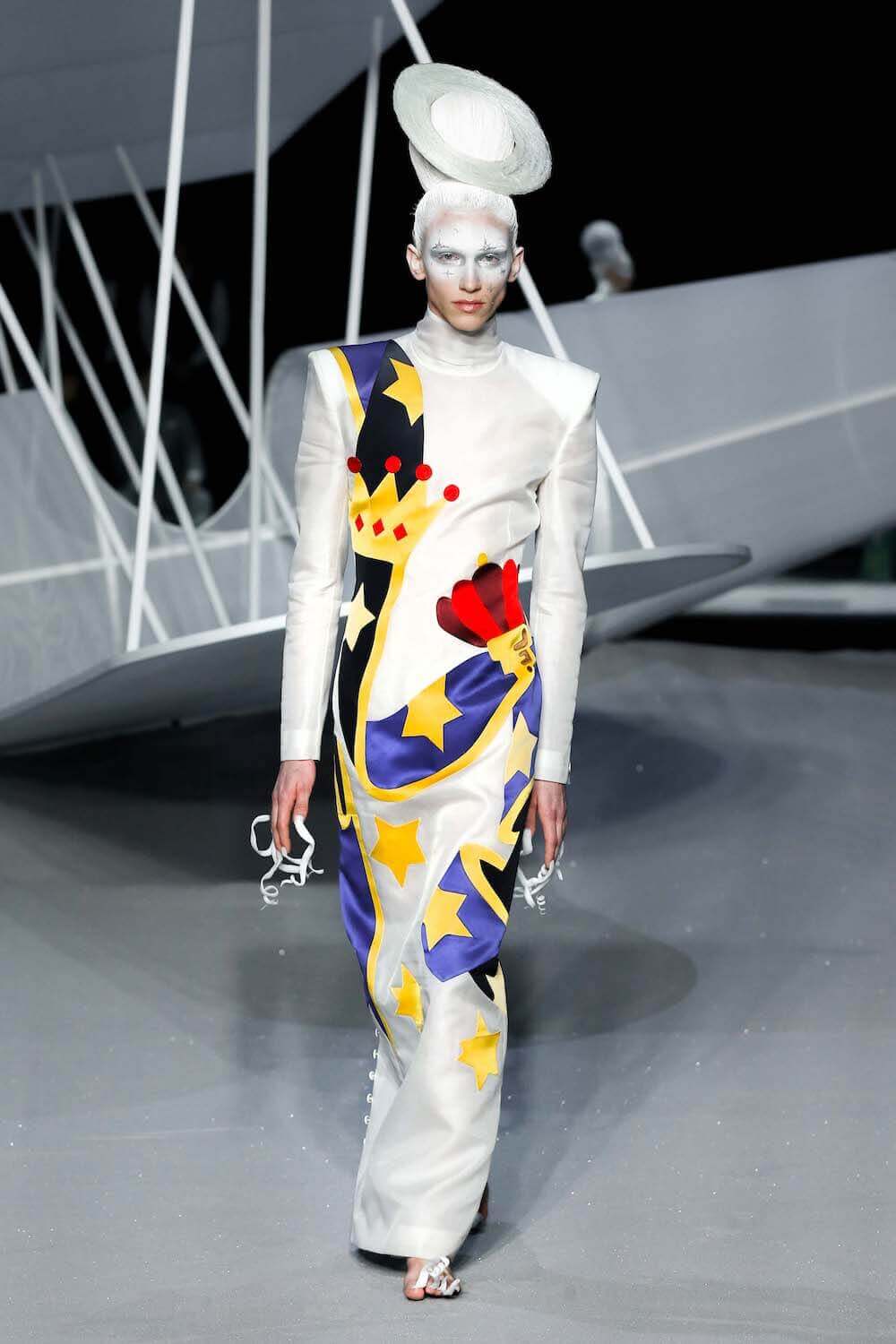 The story’s various characters, including an angel, snake, fox and elephant, were brought to life via chiffon tweed frocks, sequin jackets and grey, pinstripe suiting which was chopped up and pieced together in bonkers-yet-brilliant concoctions – like Savile Row on an acid trip. It was totally otherworldly in its excellence.