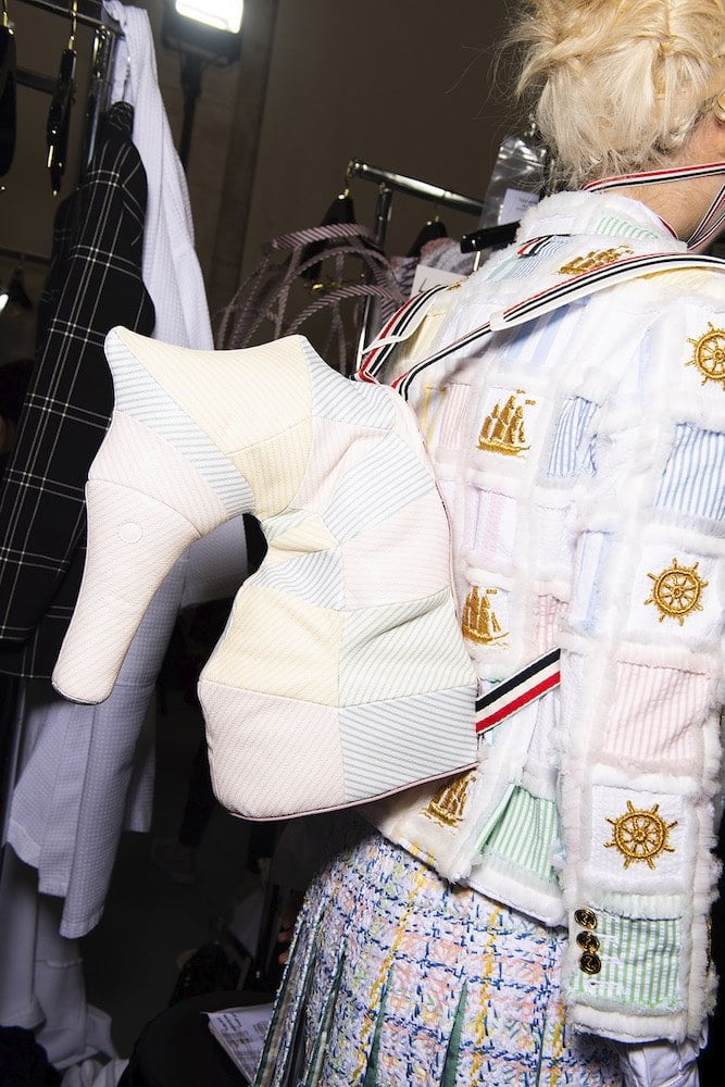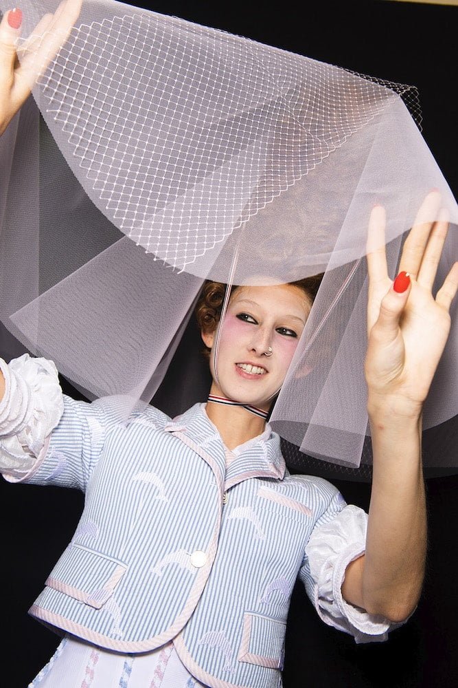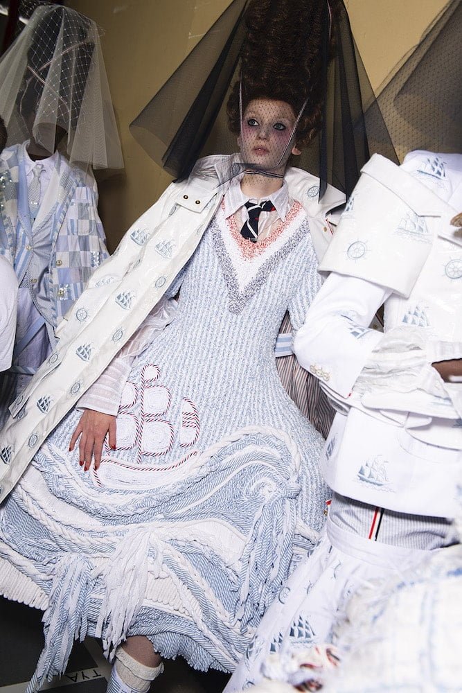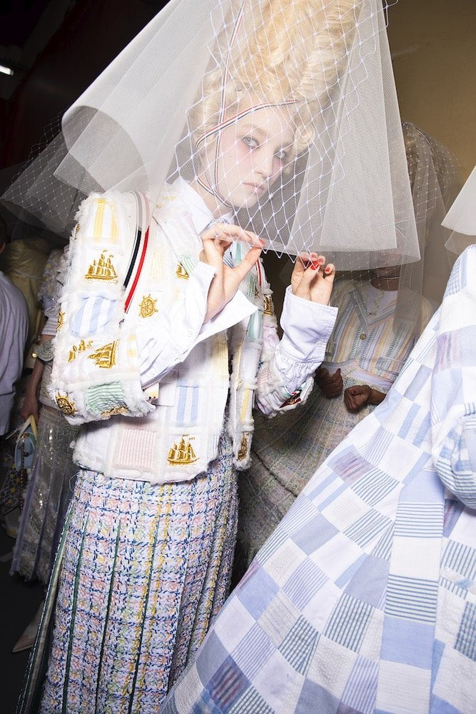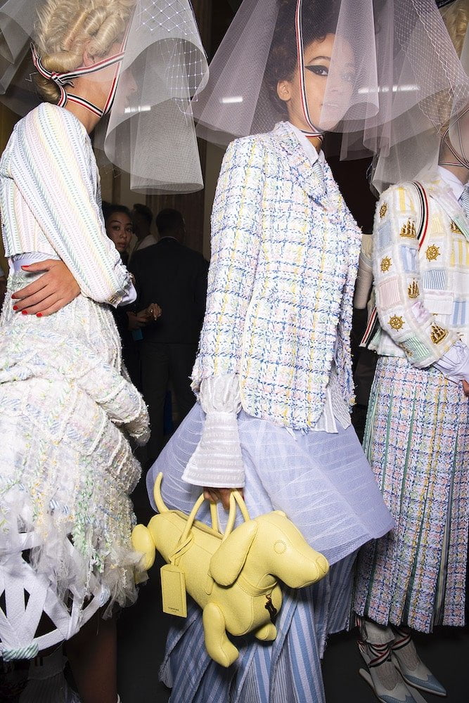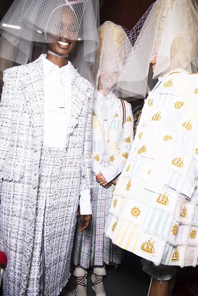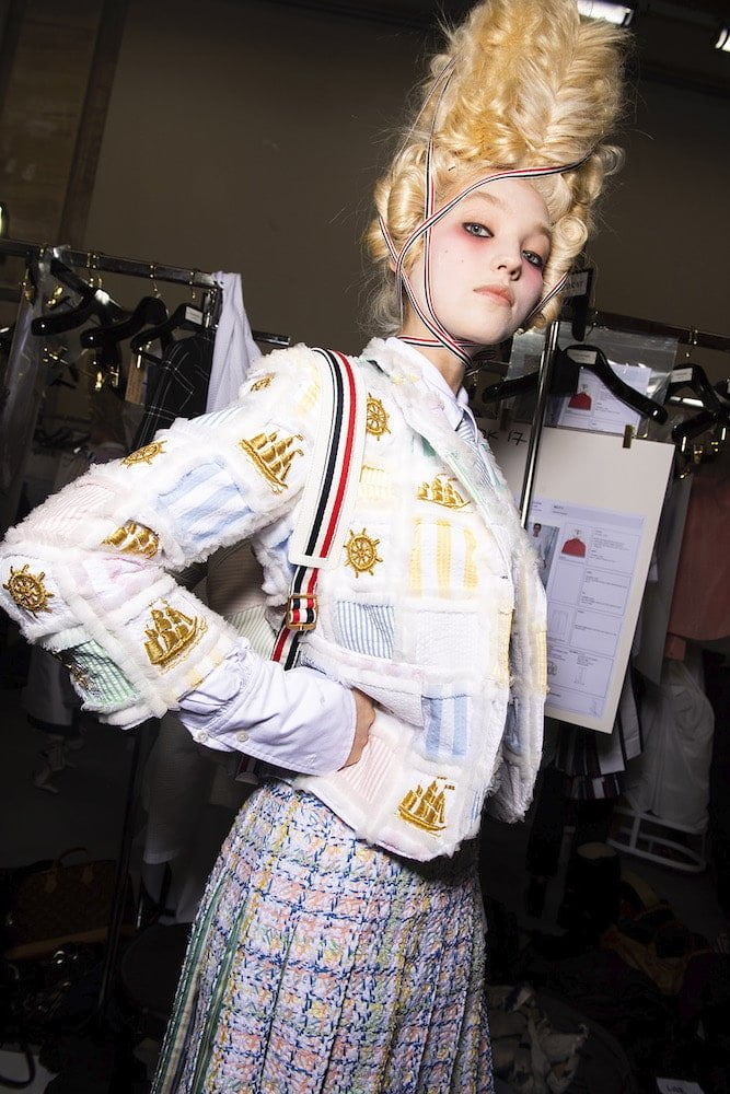 Billy Porter might have won the London Fashion Week street style game, but Marie Antoinette seems to be the accidental icon of the SS20 season. At Westwood and Bovan, bustles and panniers have part of the conversations for seasons. But now even Rei Kawakubo and Demna Gvasalia seem to be looking at the 18th century garments for construction inspiration. Sexy minimalism aside, the rich volumes and abundance of textiles seem to be the direction fashion is heading. And Thom Browne is right at the forefront of this rococo revival.