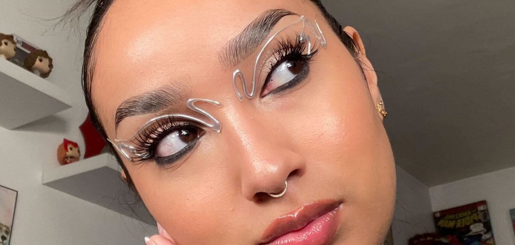 The trend was popularised by beauty creator Vanessa Funes, better known as @cutcreaser, in March this year after she posted a video in which she used a hot glue gun to help create a space-age eyeliner look. She says, “The first design I made was inspired by the Mandalorian’s Beskar armour but melted. So, I thought of melted metal and how that would look as an eyeliner design.”