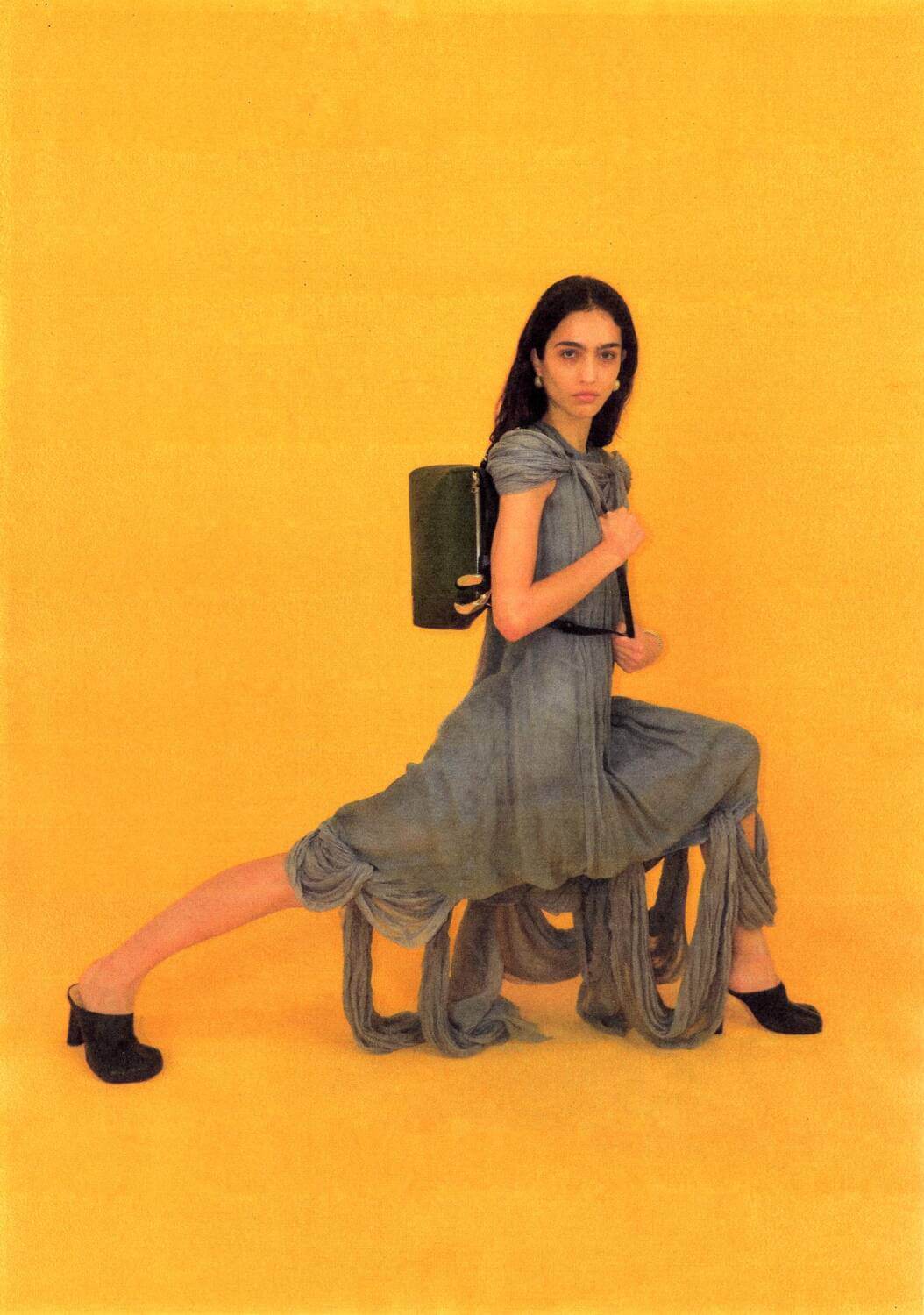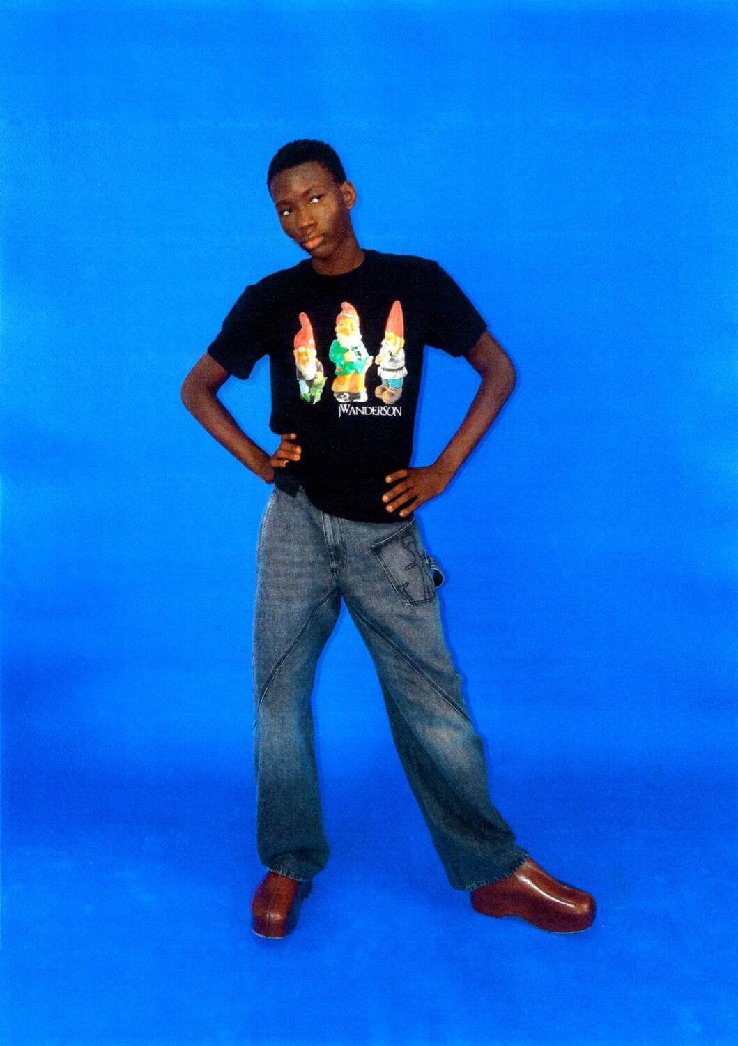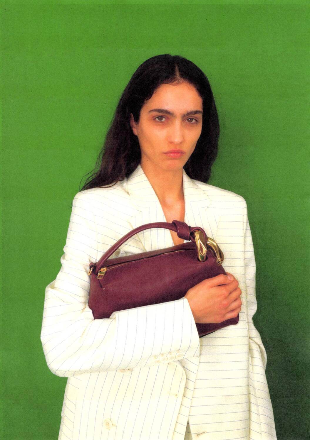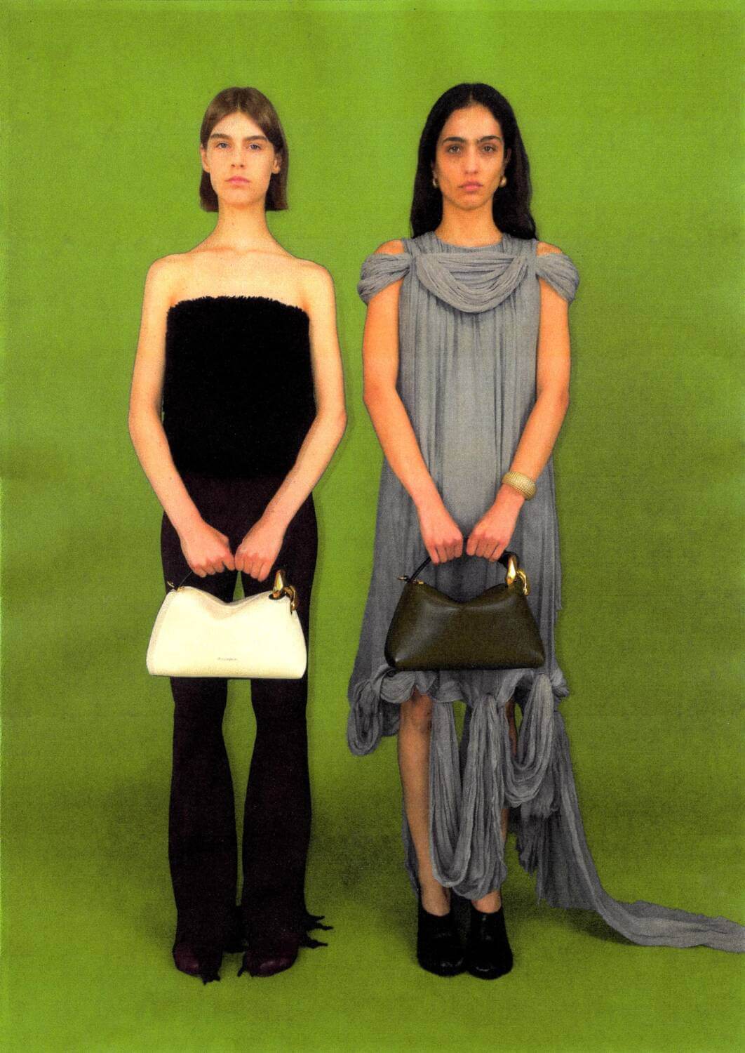 The holiday season can be stressful for even the most Kirstie Allsopp-ified person you know. An assault on every sense (and bank account), the festive period provides little rest for the wicked. Luckily, JW Anderson, like a breath of the crispest, freshest December air, has released its 2023 holiday campaign. Stripping away the elaborate and perhaps – controversially – overdone winter wonderland backdrop, JW Anderson deploys the deepest cherry red, holly leaf green, mint green, cobalt and icy blue sets to consolidate its Christmas theme, but not be too on the nose. As one model wears a boxy tailored coat and a pair of workwear jeans, the British designer wafts away the usual festive sparkles and instead provides insight into a truly comfortable vision of Christmas. Elsewhere, the London label’s buttery yellow Corner Bag is shown in a sumptuous slouchy leather and putting all our Christmas stockings to shame, and a bejewelled Bumper Bag fit for the top of the Christmas tree.