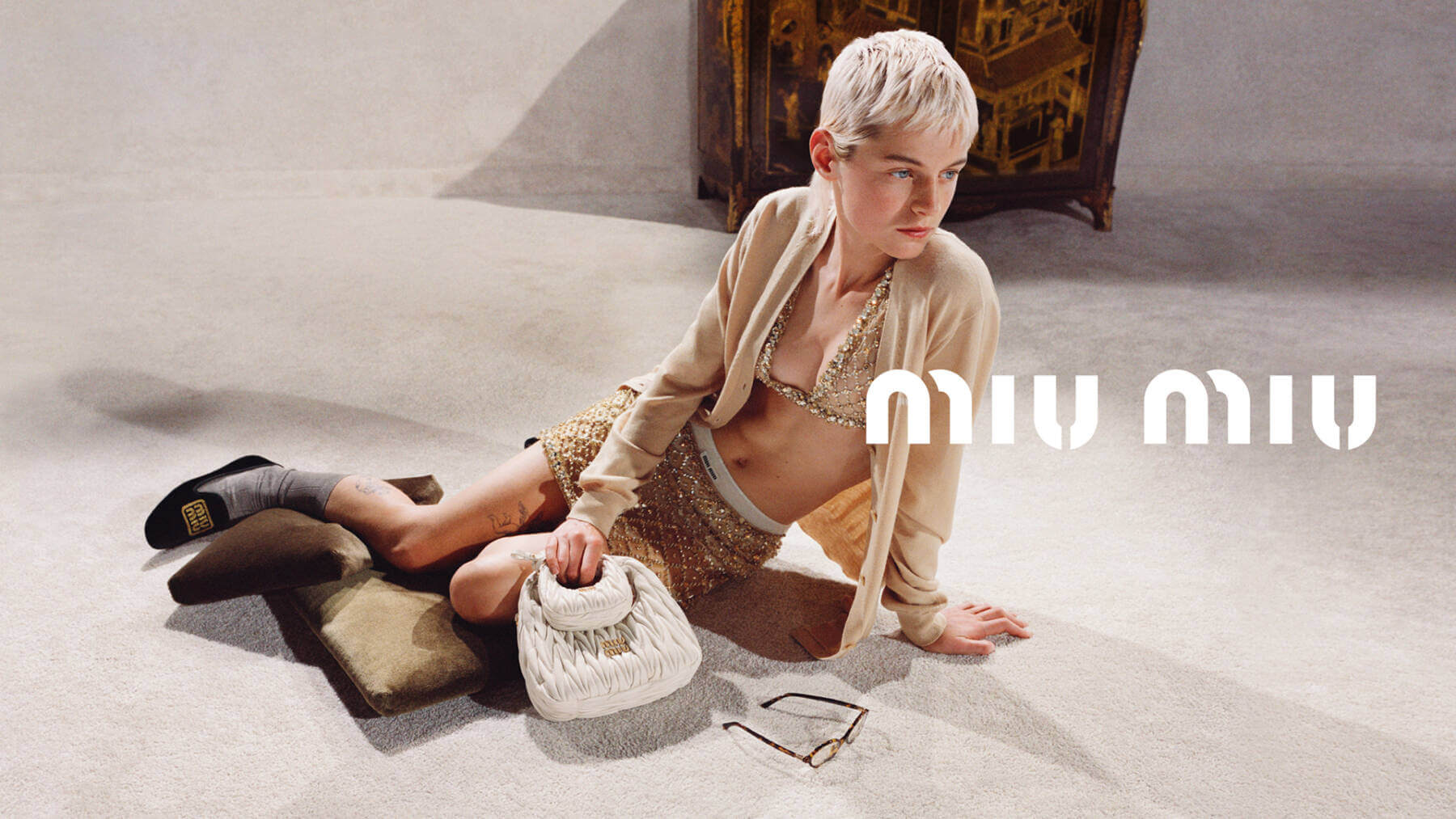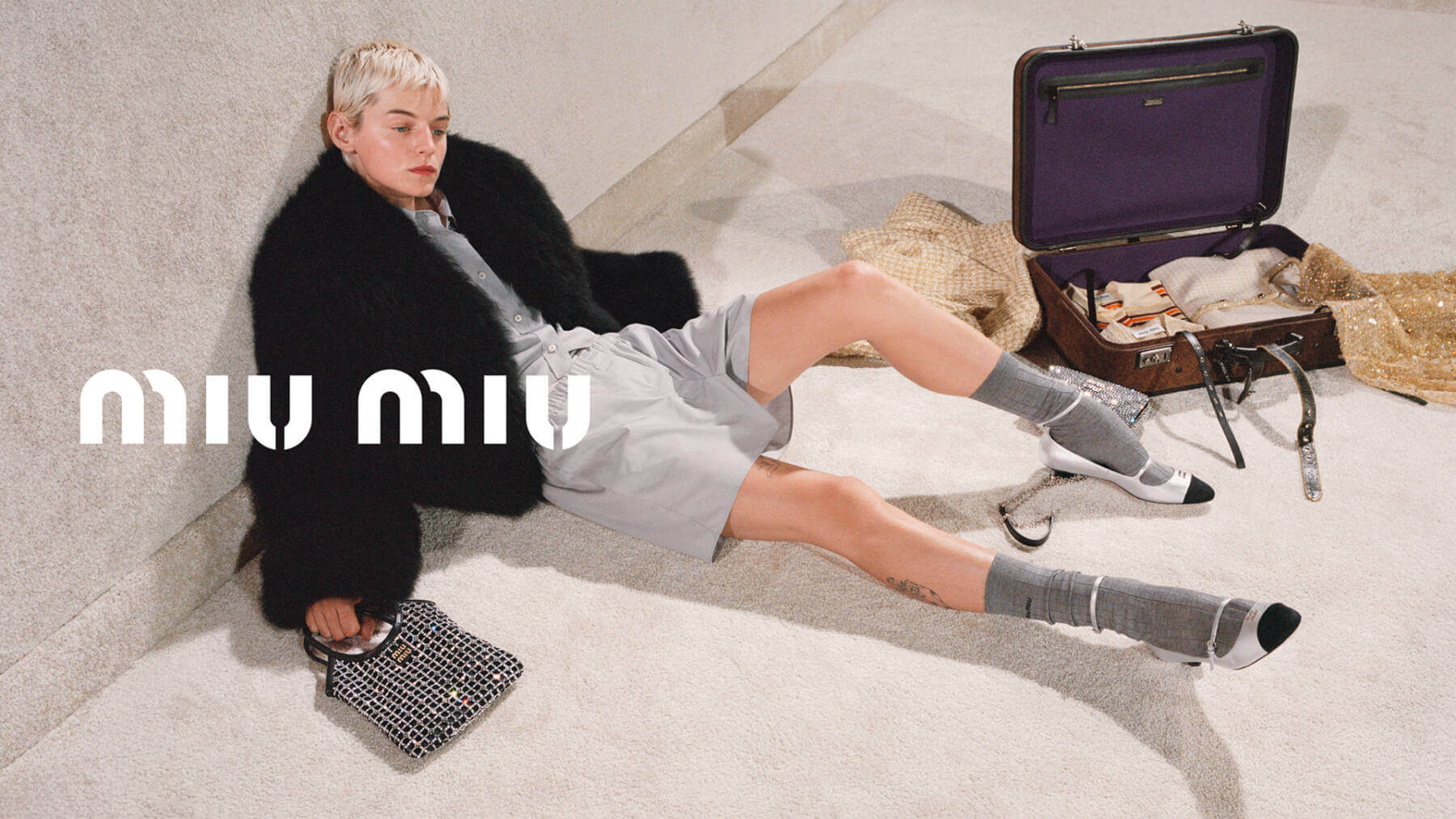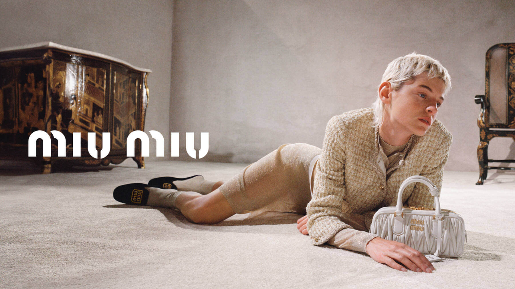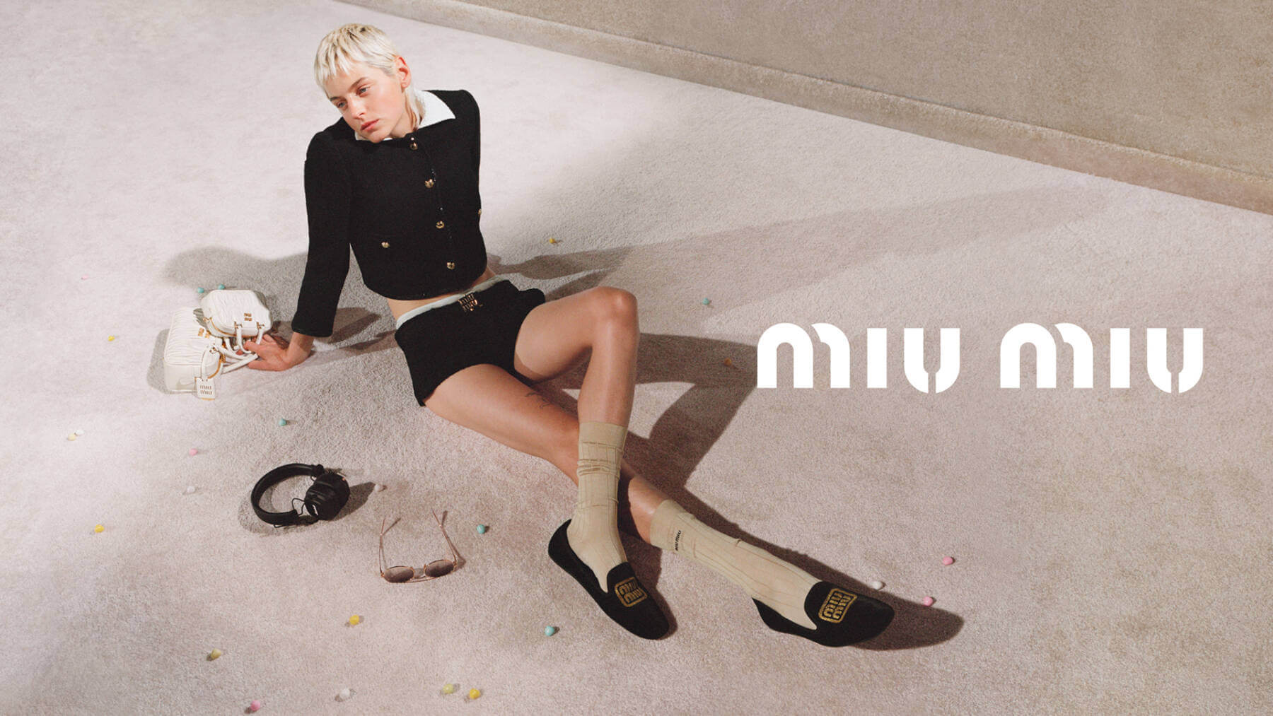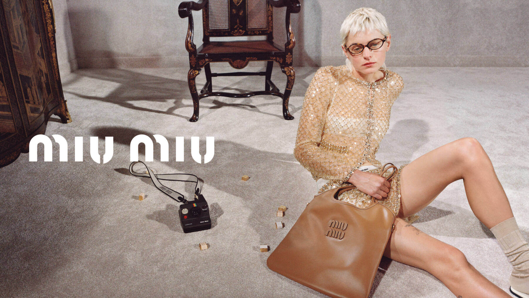 An alabaster, carpet-covered room stands frozen in time, framed by rustic antiques seemingly untouched by the relentless march of years. In the centre, Miu Miu muse Emma Corrin loafs around decked in crystal-embellished cardigans, librarian-style eyeglasses and lush twinsets, becoming the epitome of off-kilter elegance in a private room, a home, so stark and open to infinite possibilities its almost poetic. Collaborating with Marshall to create a joint line of iconic products and with Polaroid for cameras complete with branded web camera straps, Corrin’s ensembles evoke classically sophisticated dress codes and unlikely stylings as she basks, cultured and confident in her own skin. Discover more. CS