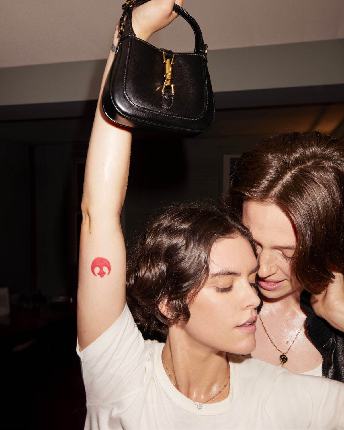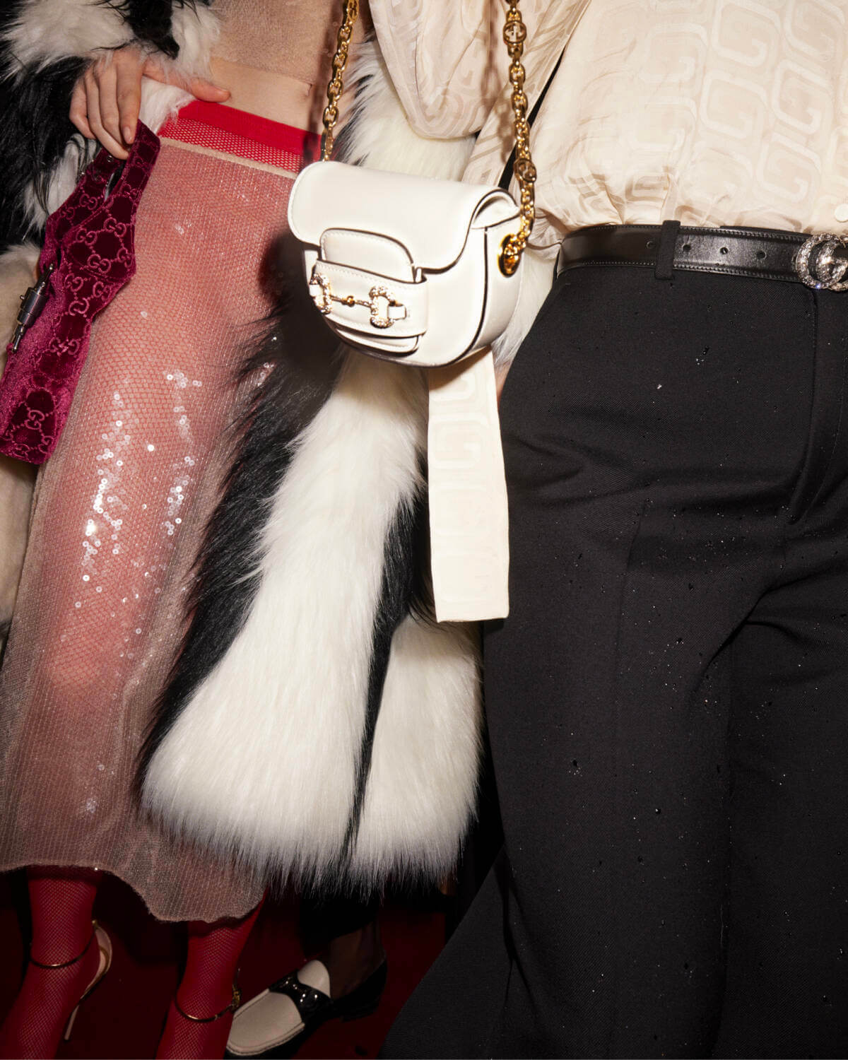 The Gucci Gift Collection boasts of a curated selection designed to inspire the art of gifting. Redefined texture, sleek silhouettes and sparkly details define a wardrobe that is as sophisticated as it is enchanting. The iconic Gucci bag collection showcases a variety of colour variations and materials, adorned with metallic elements and embellishments that add a touch of glamour to every ensemble. The Horsebit motif, gracefully adorning shoes, handbags and leather accessories, as well as jackets, denims and silks, extends its reach across the entire Gucci Gift narrative, infusing sophistication and rich history into the campaign.