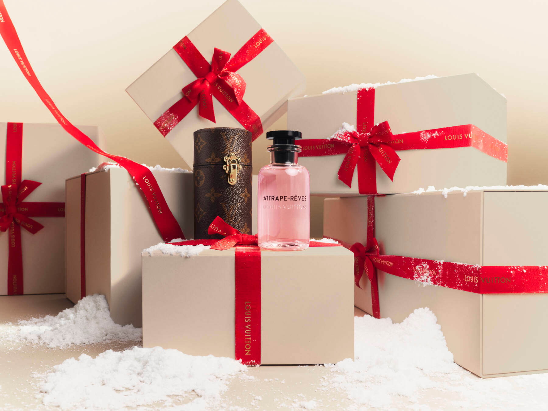 Envision a diamond ring that resembles a solitaire set-up delicately placed amid glistening snowflakes, while above, the celestial expanse hosts an ethereal display of Cartier Fabulous House as it watches over the fine jewelleries below. Elsewhere, the paved Trinity ring twinkles above Paris and luxe wristwatches sit in the snow. The Love bracelet is also featured and if you’re looking to make it a truly personal gift, add a monogram or a message with the Maison’s engraving services.