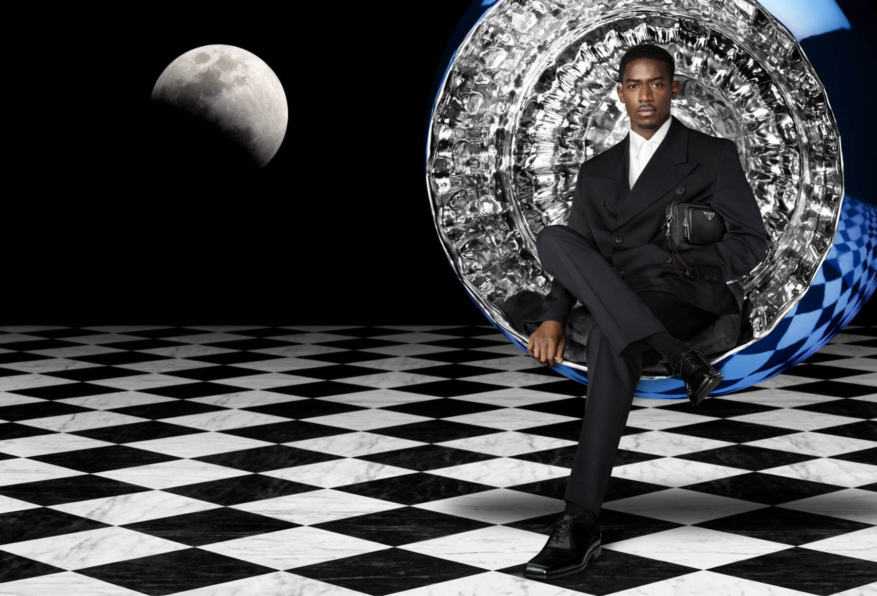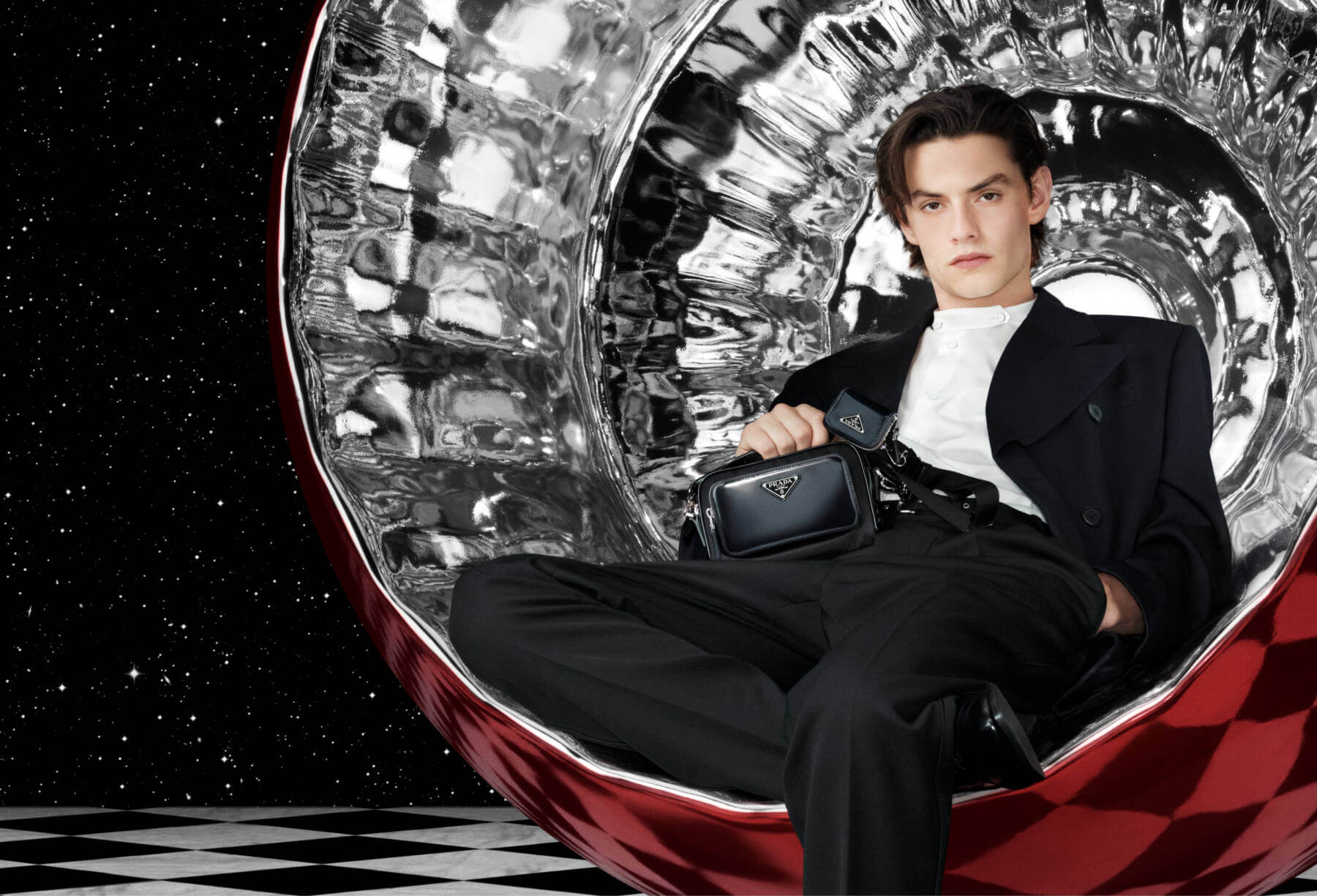 The magical holiday ad, lensed by the indelible Willy Vanderperre, transports us to a realm centred around life-size silver baubles, or “private spheres” as the maison calls them, where festive celebrations can be deeply personal. Each seated in their own chrome sphere, four world-renowned stars – Maya Hawke, Damson Idris, Louis Partridge, and Kim Tae-Ri – gracefully play themselves.