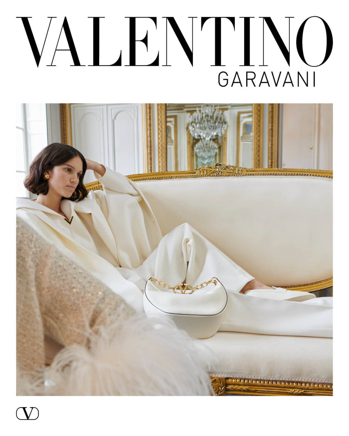 Now, let’s talk accessories – the crown jewels of any ensemble. The Valentino Garavani VLogo Moon bag makes a bold entrance here and to complete the offering of accessories are the new Valentino Garavani Rose-Rouche 1959 pumps, the iconic Valentino Garavani Rockstud pumps and the ballerinas.