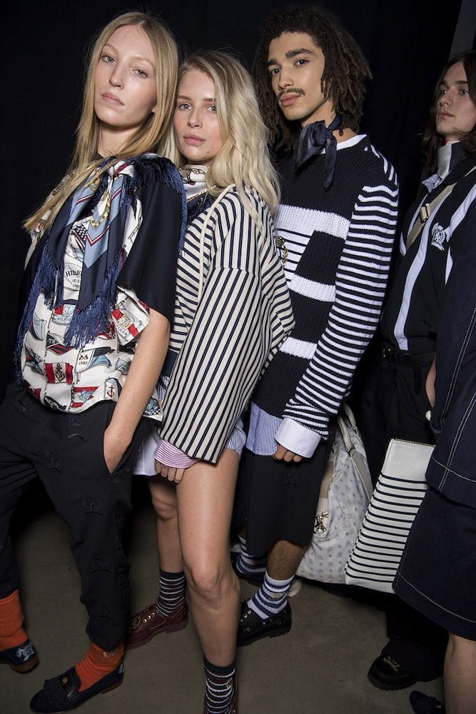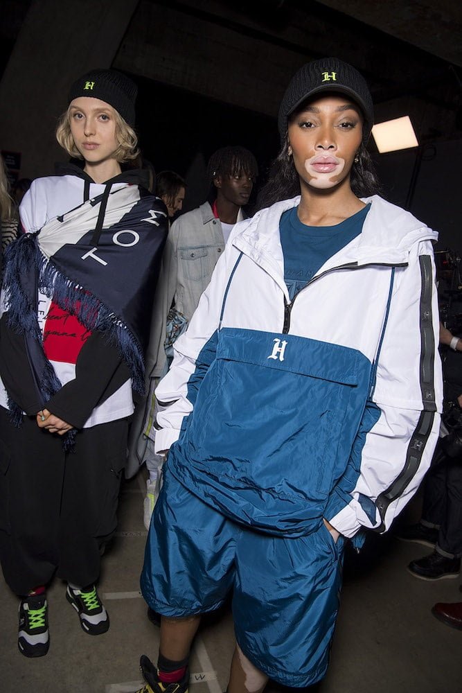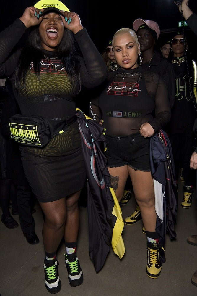 But what about the actual clothes? Naomi opened the show in a neon, glow-in-the-dark oversized tracksuit and cagoule by TommyxLewis. According to the brand, over 75% of the styles from this collection were sourced more sustainably, using “100% organic cotton, recycled materials, down alternatives and low-impact denim washes.” Then came along the TommyxLewisxH.E.R. capsule of trackies, hoodies, boiler suits and accessories aplenty, all printed with words from the musician’s best-known tracks. The final part of the show was an ode to the American lifestyle of sailing away. A nautical theme which saw icons like Joddie Kidd, Karen Elson and Erin O’Connor wrapped in vintage-looking maritime scarves served a bit of nostalgia in the forward-thinking proceedings that took place at the Tate Tanks. A singing choir, a fiery model cast including Alessandra Ambrosio, Candice Swanepoel & Jourdan Dunn, and some pretty good-looking clothes – #TommyNow for SS20 was an immersive experience that will be go down in history.