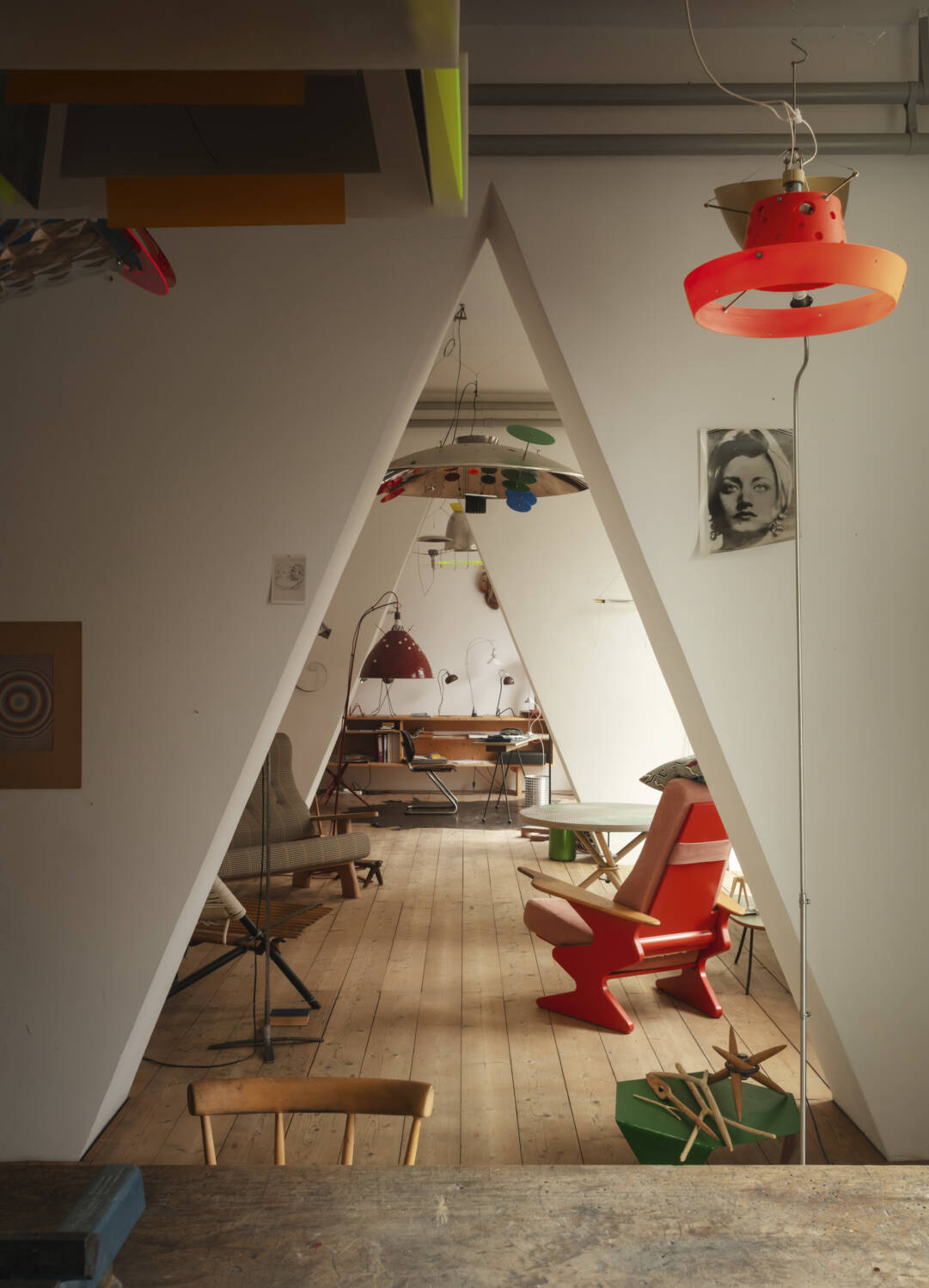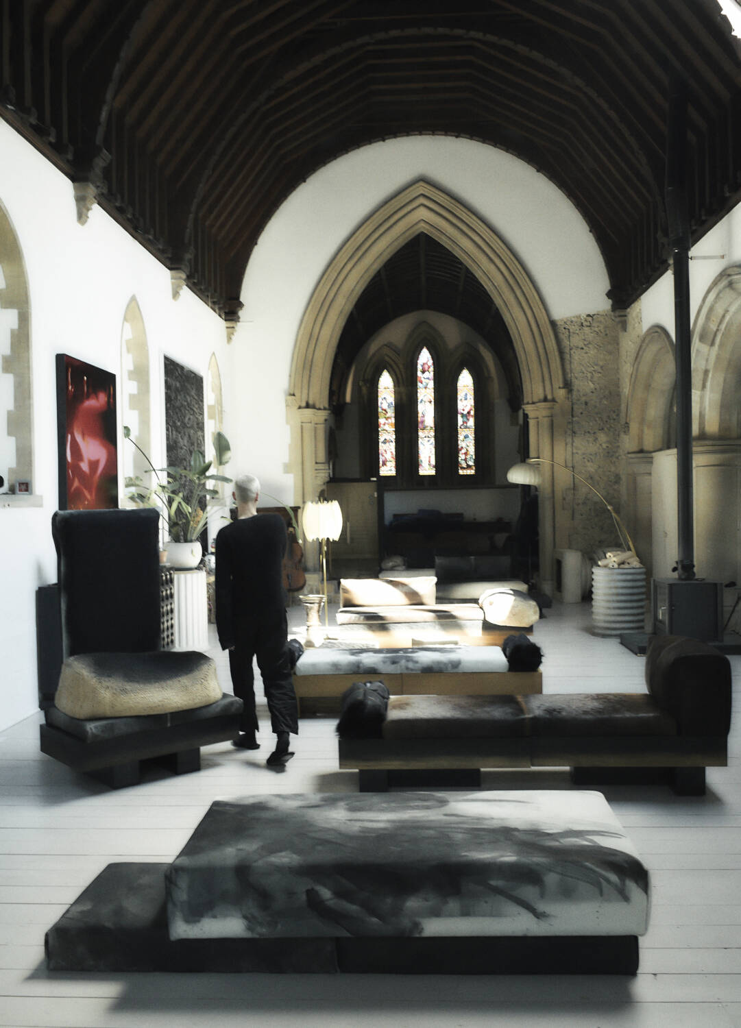 George Rouy, artist and furniture maker, lives in a former church, the pointed home of Jan Roth and Scarlet Berner, photography by Oskar proctor and Kingsley Iffil, courtesy of Ton