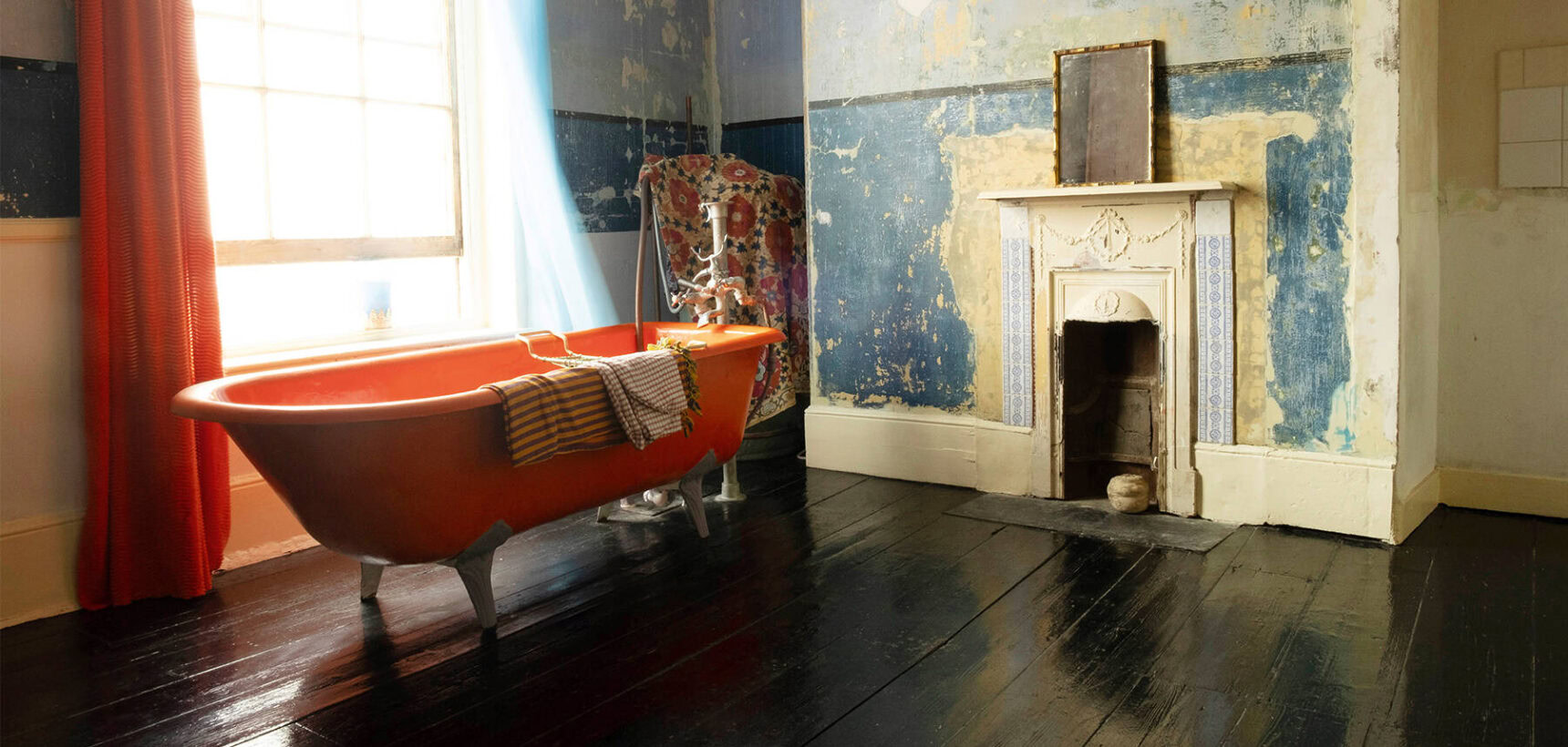 A bathroom stripped to its bare bones, photography by Esther Theaker, courtesy of Ton