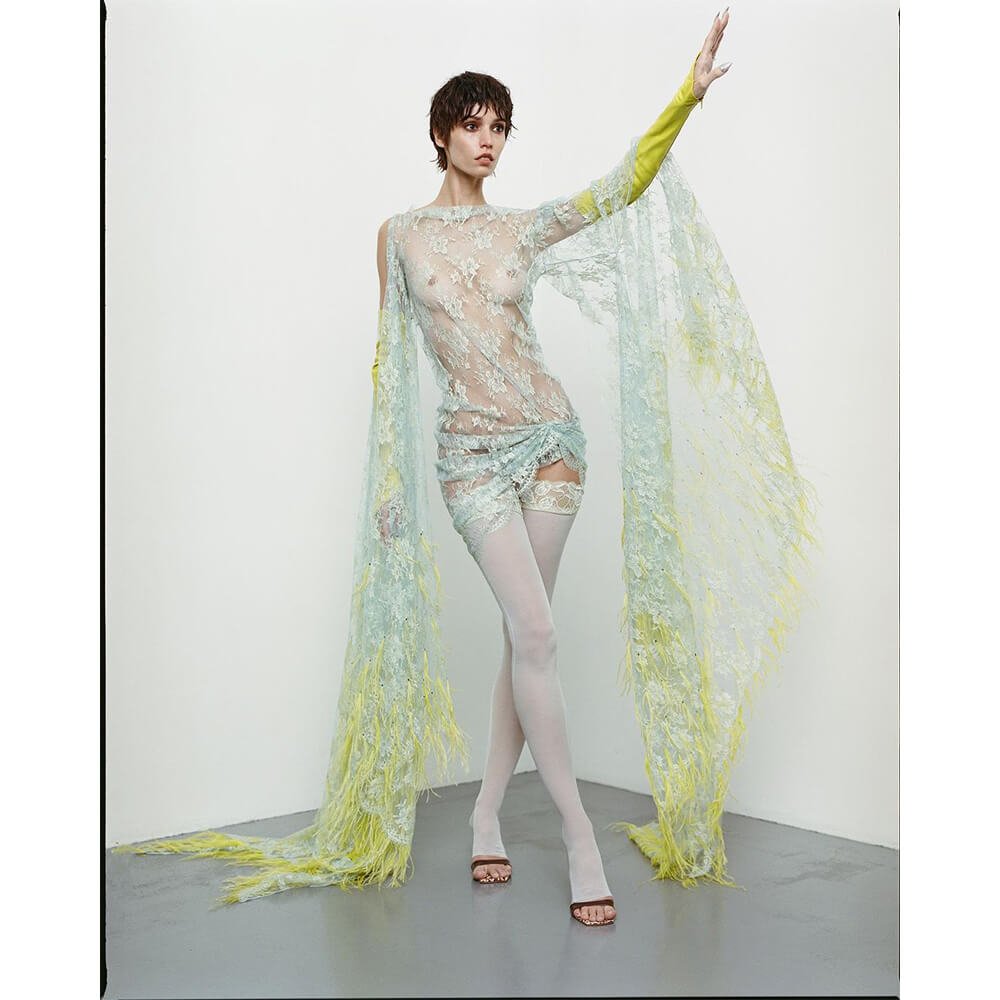 “Ukrainian in heart, in body, in blood,” states Frolov’s instagram bio. It’s a powerful statement that bleeds into everything the label touches. Made distinct by its highly textural couture-to-wear gowns, itty-bitty party dresses and corsetry that boast intensely intricate detailing, embroidery and crystal ornamentation, the Kyiv-based brand is beautifully feminine, and of course, a favourite of celebs like Doja Cat, Gwen Stefani and Coco Rocha. By combining comfort, freedom, provocation and social responsibility, founder and creative director Ivan Frolov explores LGBTQIA+ culture, BDSM ethics and aesthetics, as well as fetishism.