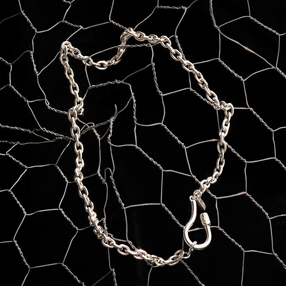 Stylist and designer Artem Pylypenko is an emerging 23-year-old designer who under the Ukrainian Martial’s Law has been tethered to the country, unable to vacate since February. However, while developing his brand in the midst of the conflict beyond his walls, he was able to connect with contemporary jewellery brand Hatton Labs and joined the team as a freelance assistant designer. Now, for this Ukrainian Independence Day, they have linked up for a jewellery collection and limited edition T-shirt, captured by photographer Thomas Albdorf, that places the carabiner – a climbing safety tool – at its fore. However, while researching, Pylypenko discovered that the word ‘carbine’ first appeared to name certain firearms. “I found this play between death and life-saving quite paradoxical, some kind of complete ambivalence,” he wrote in the collection notes. “I took the parts of the safety ‘carbine’, the notches from the weapon, and tried to derive a new shape that would resemble the number 8 (how long the war in eastern Ukraine lasts).”