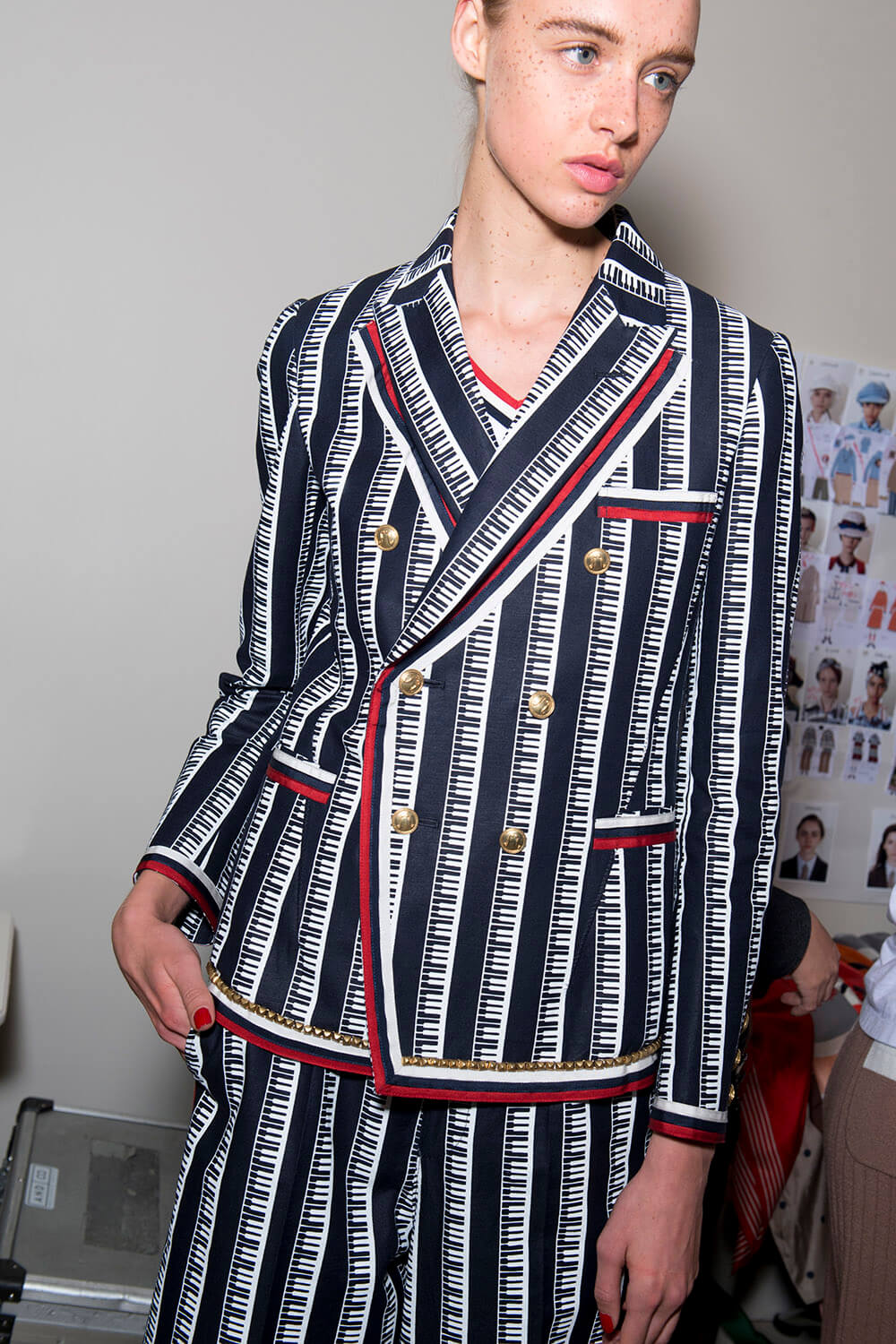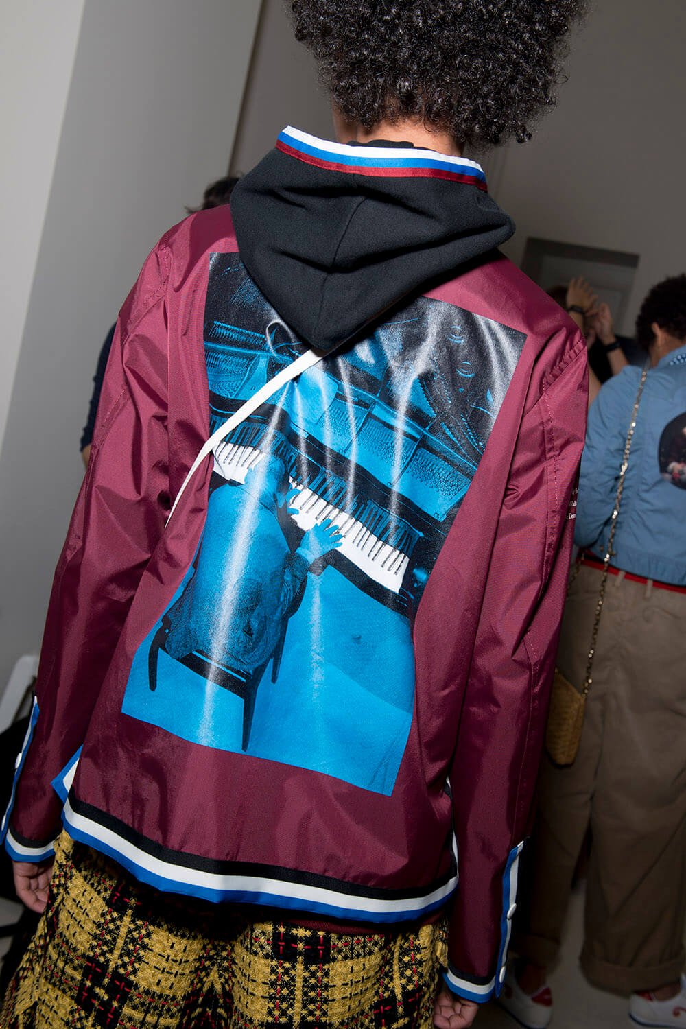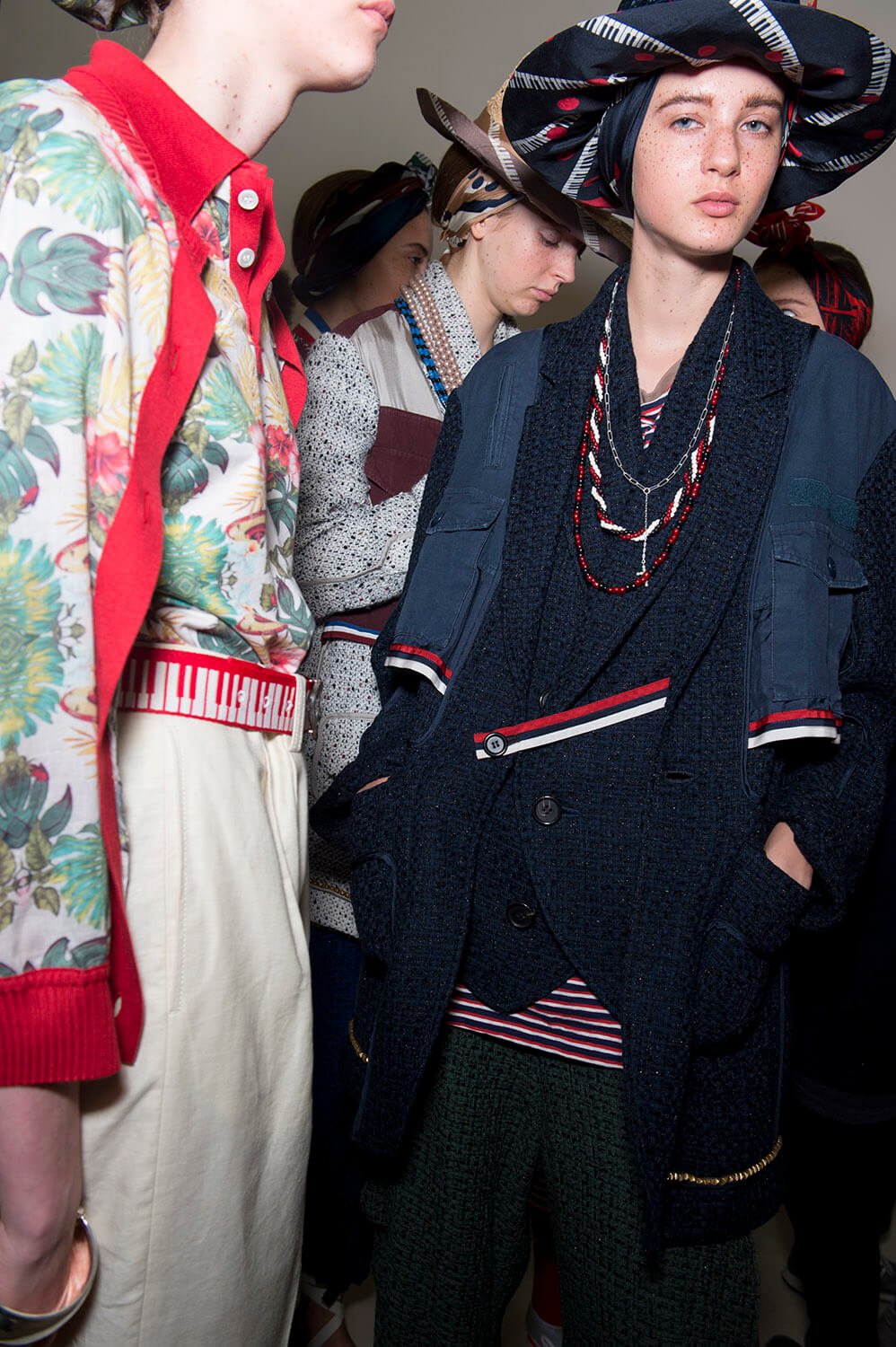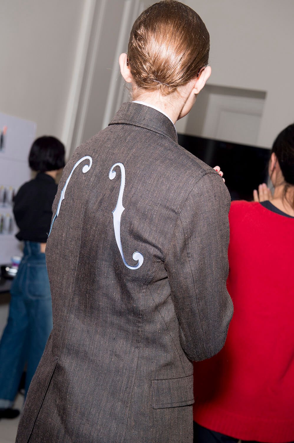 Jun Takahashi is feeling the jazzy vibes at Undercover SS17. Quite literally. So apparent, it was more a tribute to jazz. We sat in Hotel Salomon de Rothschild, under chandeliers as Gershwin’s composed tunes, Miles Davis and Art Farmer played. It was all about the music. Belts were printed as piano keys, quintets were printed onto shirts and photos of Sonny Rollins adorned loose skirts. Deep in that jazz realm. It felt like we had been transported into a Parisian private jazz club. The ladies wore tweed, high waisted wide leg pants and pearls. Bomber jackets were ribbed with colours of the French flag. They sauntered through, cool struttin’, Sonny Rollins would be proud. But the headliner of this collection was Bill Evans, his iconic track Waltz For Debbie and album Portrait were printed onto jackets and skirts even giving a nod to his post Miles Davis stint with the words Bill Evans trio printed everywhere. And then Takahashi brought Bill to life with a finale of ladies dressed in his iconic get up. And that was that.
