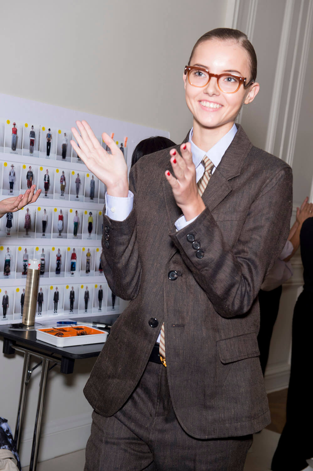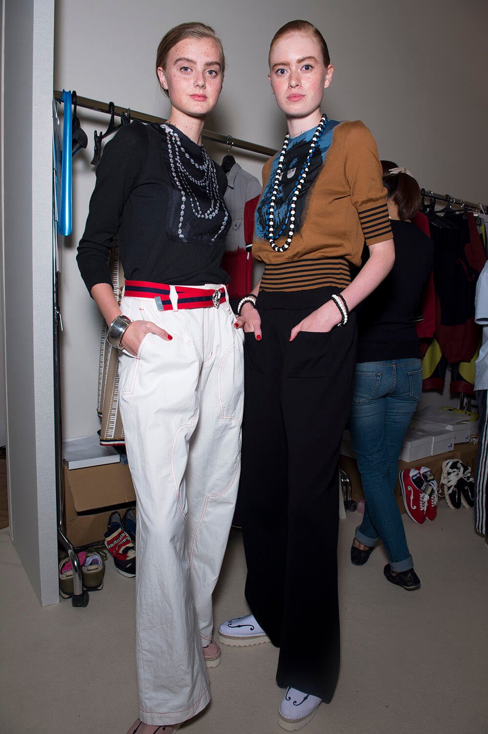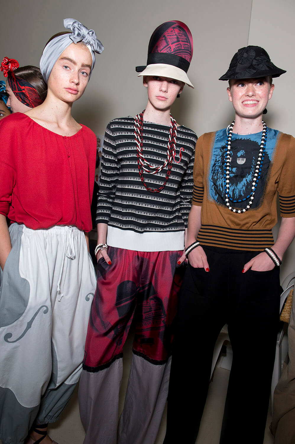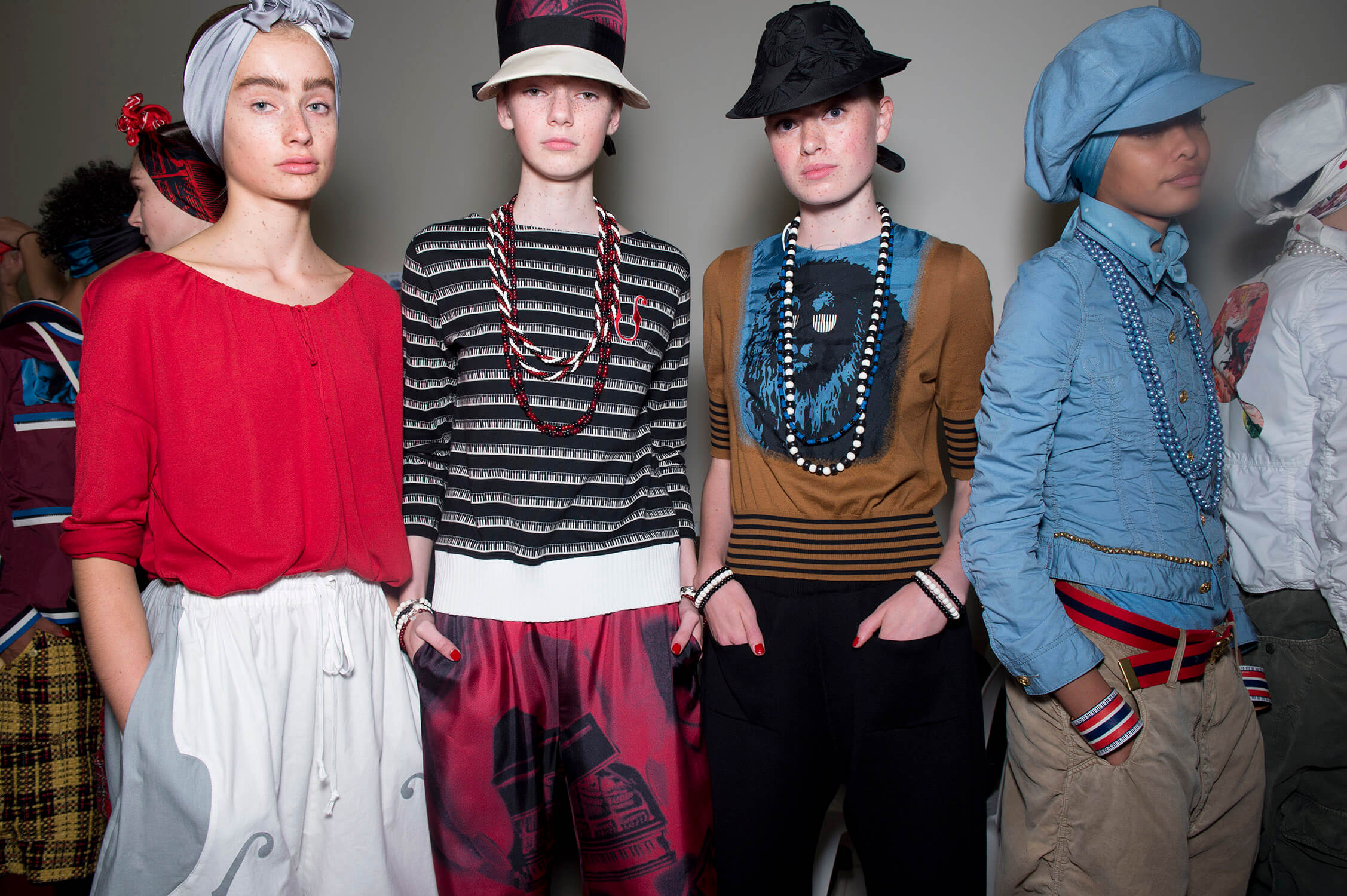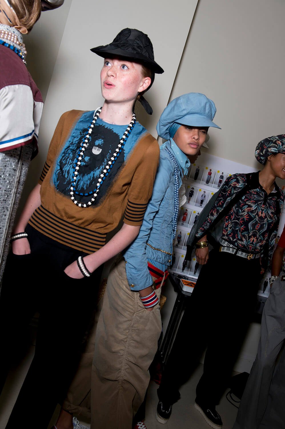 Jun Takahashi is feeling the jazzy vibes at Undercover SS17. Quite literally. So apparent, it was more a tribute to jazz. We sat in Hotel Salomon de Rothschild, under chandeliers as Gershwin’s composed tunes, Miles Davis and Art Farmer played. It was all about the music. Belts were printed as piano keys, quintets were printed onto shirts and photos of Sonny Rollins adorned loose skirts. Deep in that jazz realm. It felt like we had been transported into a Parisian private jazz club. The ladies wore tweed, high waisted wide leg pants and pearls. Bomber jackets were ribbed with colours of the French flag. They sauntered through, cool struttin’, Sonny Rollins would be proud. But the headliner of this collection was Bill Evans, his iconic track Waltz For Debbie and album Portrait were printed onto jackets and skirts even giving a nod to his post Miles Davis stint with the words Bill Evans trio printed everywhere. And then Takahashi brought Bill to life with a finale of ladies dressed in his iconic get up. And that was that.
