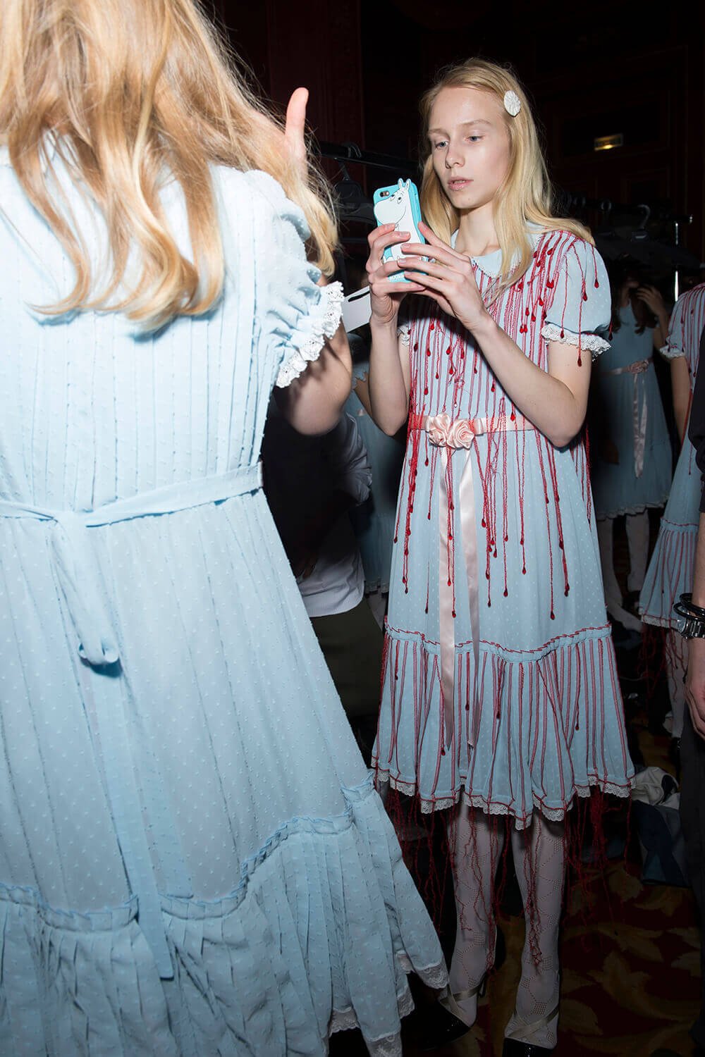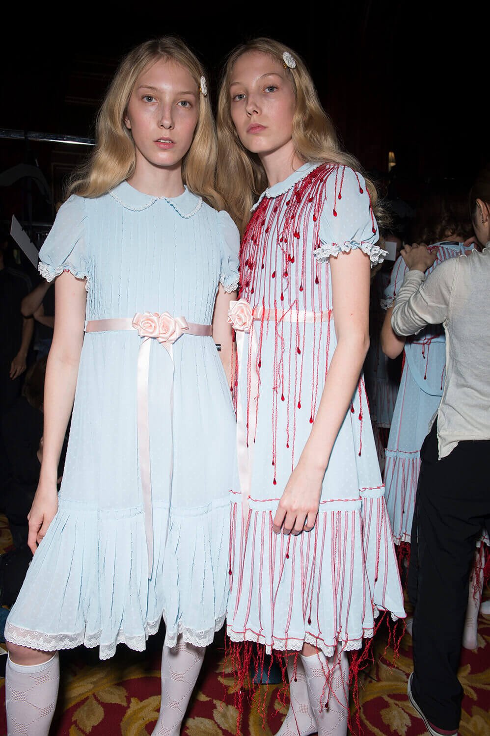 At the end the girls walked out in a second change – each in a pretty frock – one however, had threads of red beads hanging off it. Blood? And when the music from Kubrick’s fantastical horror classic The Shining came over the speakers, the haunting twin show models now made even more sense. Unnerving. And absolutely incredible. Incredible.