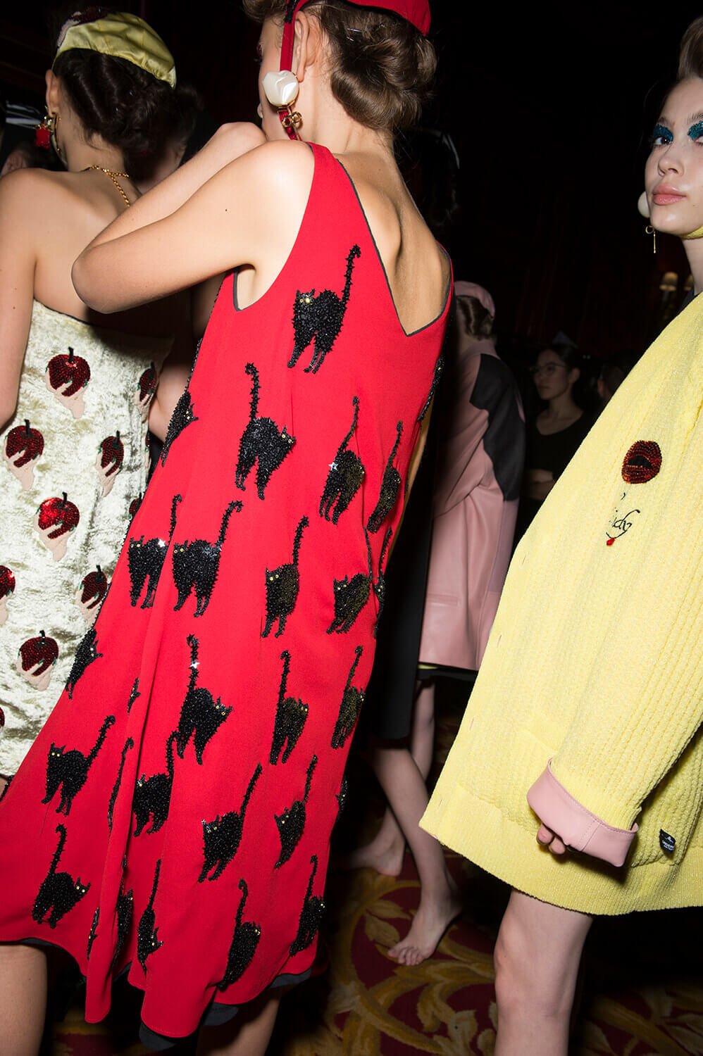 So what did it all mean? It’s up to you: with prints of UFOs on one dress and another covered in jutting red sequin lips; it could mean all manner of things. But in the main it meant duality and dual dressing. It also meant twice the ideas than everybody else. So there.