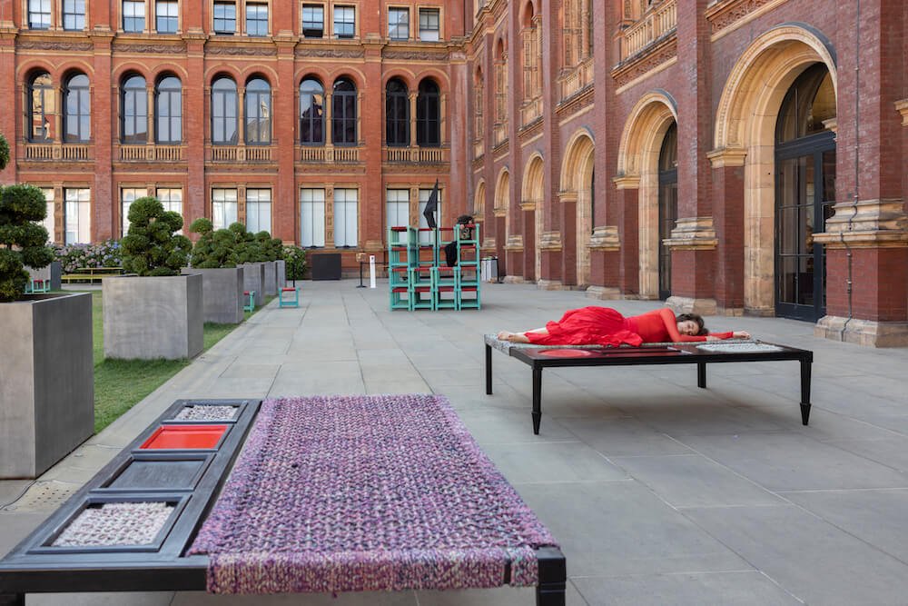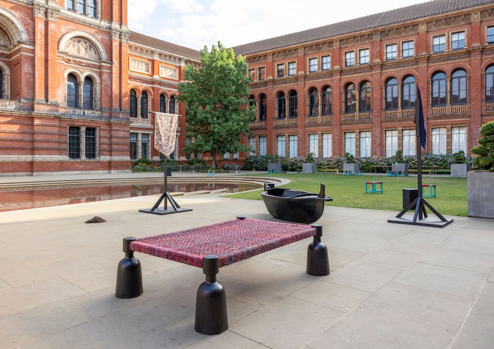 “[The exhibition] is a commentary on the migratory experience, displacement and the effects of the climate crisis,” adds Tristram Hunt, director of the V&A. “Interventions such as this offer an opportunity to bring diaspora voices to the heart of the V&A, to be in conversation with the museum’s vast South Asia collection.”