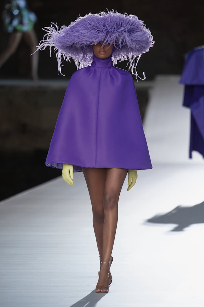 But the big gowns were only half the couture story. There were teeny-tiny bubble-shaped cocktail dresses worn with wonderful feather hats that seemed to float like vivid, alien jellyfish atop the models’ heads.