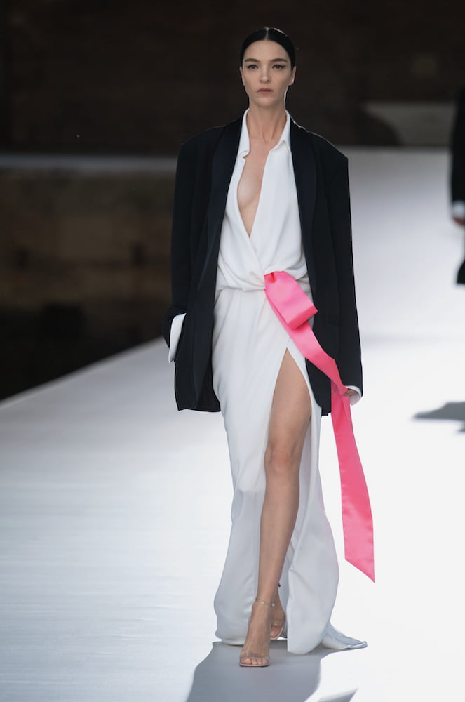 As the sun set on the Venice lagoon, Valentino’s couture models swept past in billowing taffeta gowns, like glorious galleons in full sail. Pierpaolo Piccioli had built a catwalk around the city’s ancient shipyard which is steeped in maritime history.