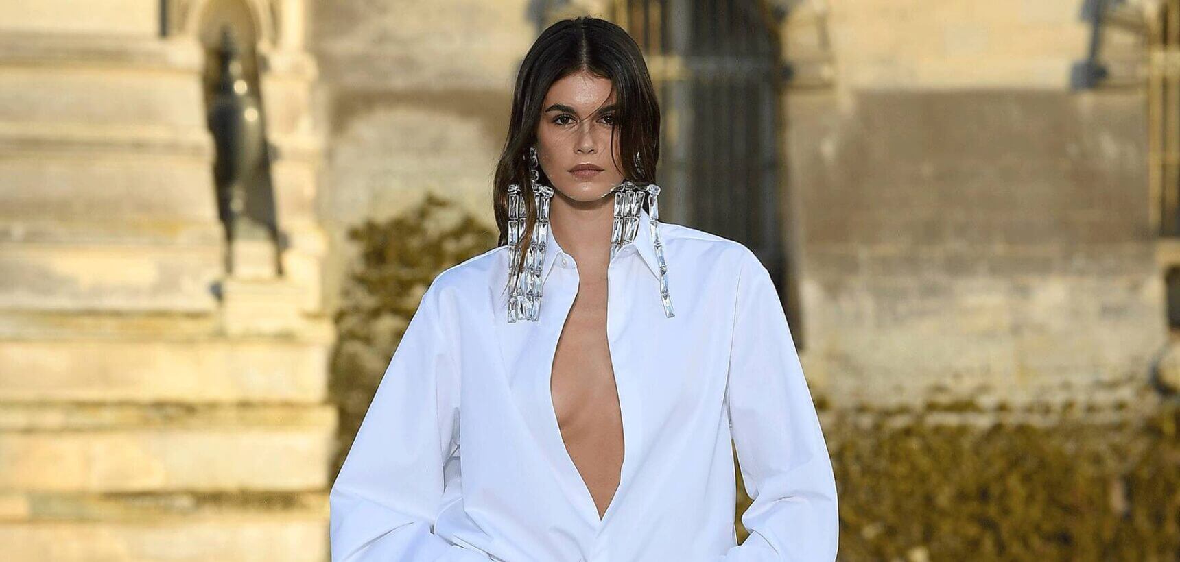 There were no signs of lace, heavy cream or horses – the three trademarks of Chantilly – but the Valentino show covered just about every other dream on Planet Couture. “I wanted to go back to the Valentino idea of the castle but to use it simply as a place. As a no-place, actually: an idea of freedom and purity and simplicity. A sense of equality in a place where there’s always been rules. I wanted to take away all the meanings of the castle and just give it humanity,” Pierpaolo Piccioli said of his savoir-faire spectacular at Chateau de Chantilly, the Renaissance revival castle some 90 minutes outside Paris. The collection took the signatures of majestic dressing and reduced them to a purified and simplified echo of their opulent glory, creating contemporary and chic silhouettes imbued with the movements and gestures of real life. “I wanted to catch the lightness of the moment. Sometimes when you take a picture, it’s never as light as when it moves. I wanted to freeze the movement in sort of gestures. The constructions are incredible but you won’t see it. They look super simple,” Piccioli explained. Scored by an emotional soundtrack by Anohni, the show hit a high note for the couturier and his team who took a collective bow on the grand staircase of the castle.