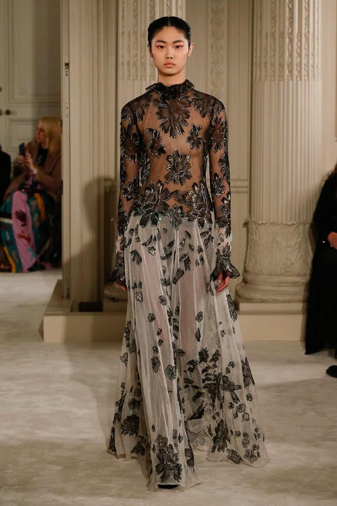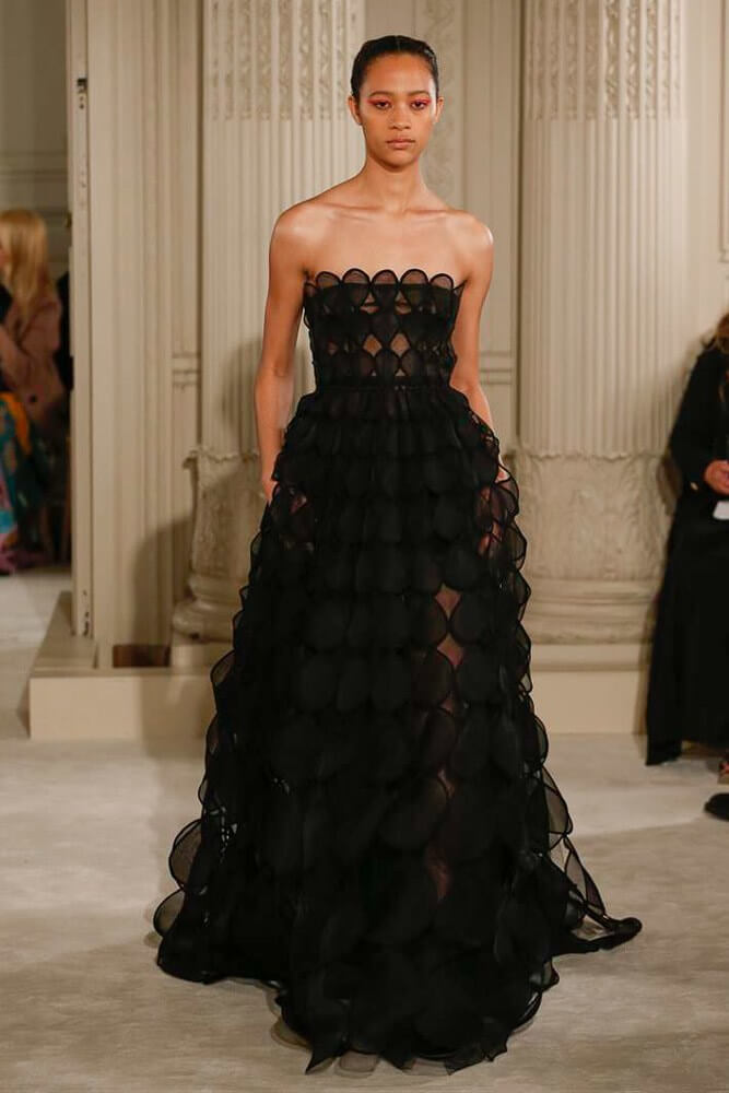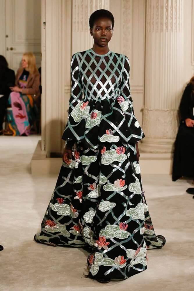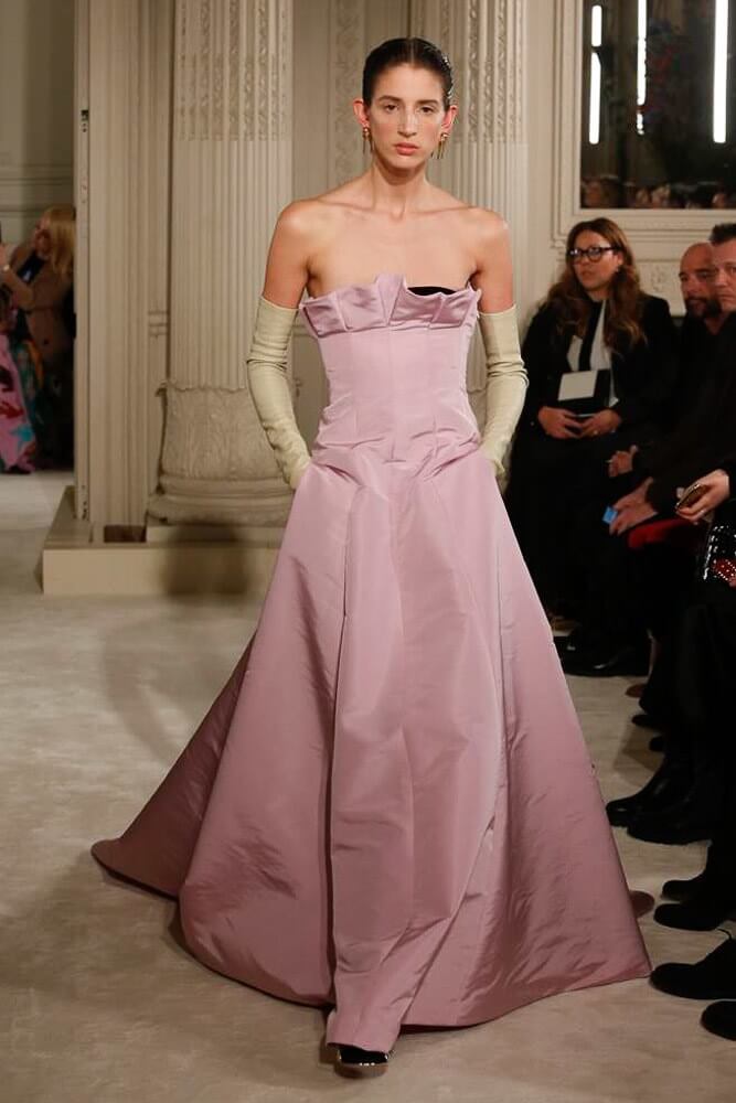 Exaggeration handled so eloquently. Each piece harmoniously confronted the next. And then, that moment, the deep dive of the first black dress, a sharp intake of breath, bridging into the romance of etched giant flower prints. Taffetas and moiré, acres of fabric handled so lightly, scooped up with ease. A tenderness to it all. Lady Duff Gordon was inspo. Important Fact: the British designer, known as Lucille, survived the sinking of the Titanic in 1912. Just saying. She’s a survivor. This was Pierpaolo Piccioli’s vision coming to life through the Valentino atelier “a continuous dialogue between the one who imagines and the one who completes.” A poetry of modern couture. This is how it should be.