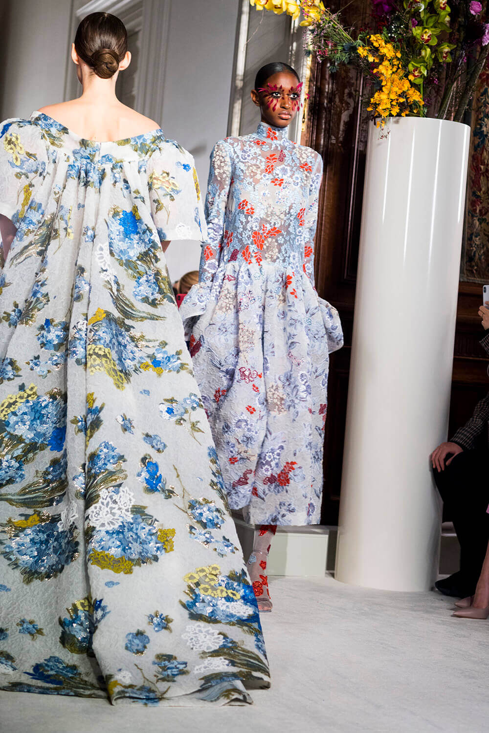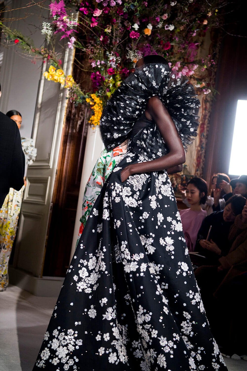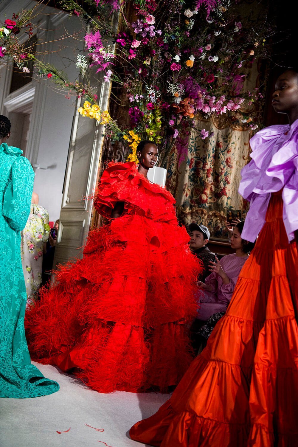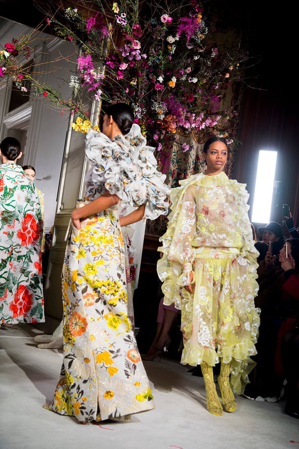 “The vocabulary, not the language, of Couture changes,” said the designer who took its traditional ruffles, frills, fringes and flowers to another level with his extravagant volumes. But it was his approach to colour – of his clothes and the models wearing them – that was particularly effective. Over half the models were women of colour. The designer explained he’d been thinking about the marginalising of black women both in the Renaissance art that inspired him and in the cannon of couture imagery that informs his work. He thought: What if Cecil Beaton’s famous 1948 tableau of a group of couture-clad models was recreated with black women? The results were breathtaking because each look was designed to complement and enhance the individual skin tones of the woman wearing it (this is where couture’s bespoke approach comes into its own). Their beauty was amplified. Naomi leading the way at Maison Valentino by Pierpaolo Piccioli SS19 Haute Couture.