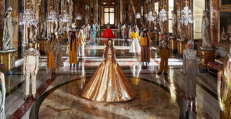 What will you wear to the party at the end of the universe? Valentino’s Pierpaolo Piccioli has some thoughts. His Couture is a reckoning of life, the universe and everything. He calls it the temporal code and sees it a powerful coming together of human ingenuity and digital dynamism, all dipped in gold dust.