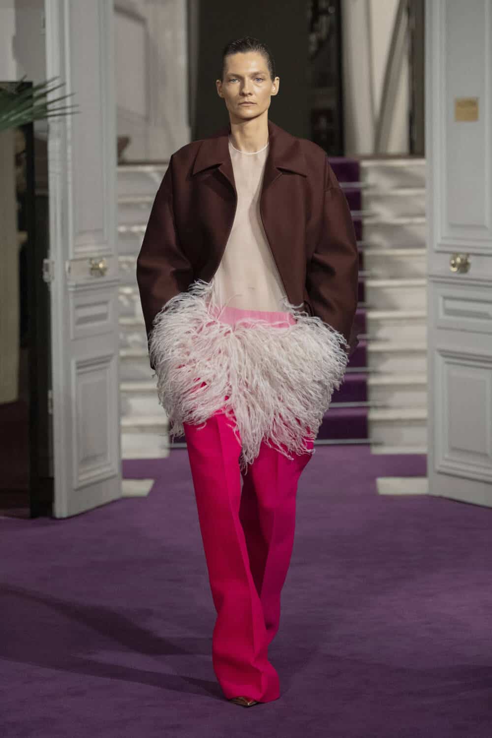 The maison’s trusted couture clients will undoubtedly be drawn to the collection’s boxy parkas and swing skirt combinations, alongside the high-waisted trousers, relaxed suit jackets and vests with scooped necklines. Where Piccioli thrives is his ability to collide understated elegance with serious show-stopping power. Think floor-sweeping capes made from a bed of silk roses, and opulent skirts and coats that, at a glance, looked tinsel-like yet were actually crafted from strands of metal. It made for a dazzling highlight amongst this season’s couture shows.