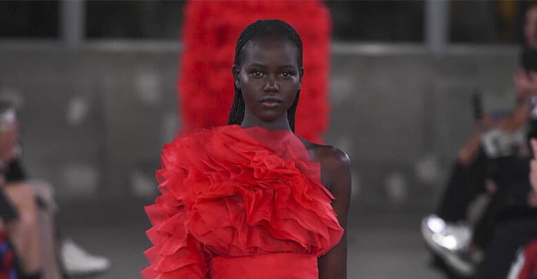Today, it was Pierpaolo Piccioli’s turn as he opened the season of Pre-Fall 2019 destination shows with Maison Valentino in one of Tokyo’s many concrete constructions. Perfectly measured in his exuberance, Piccioli took inspiration from the mindset of wabi-sabi in an acceptance of imperfection and creating a form of ever-evolving beauty. Between recreating classic shapes of Maison Valentino in both men’s and womenswear departments in a fresh way, the looks delicately paid homage to Japan’s fashion heritage. The show opened with a set of exits in the perfect shade of carmine red, which later escalated into black, white and then back into a richer, spicier hue of red – without losing the sight of Maison Valentino, this collection looked perfectly in tune with its setting. As Kaia Gerber closed the show in a ruffled gown of crimson organza, the tone for Pre-Fall 2019 was set – a subdued sensibility of luxury is the way to go.